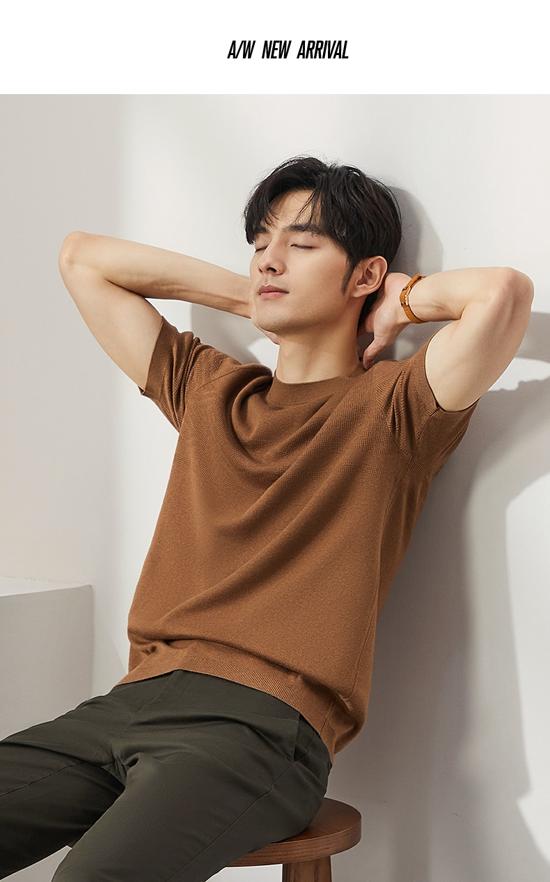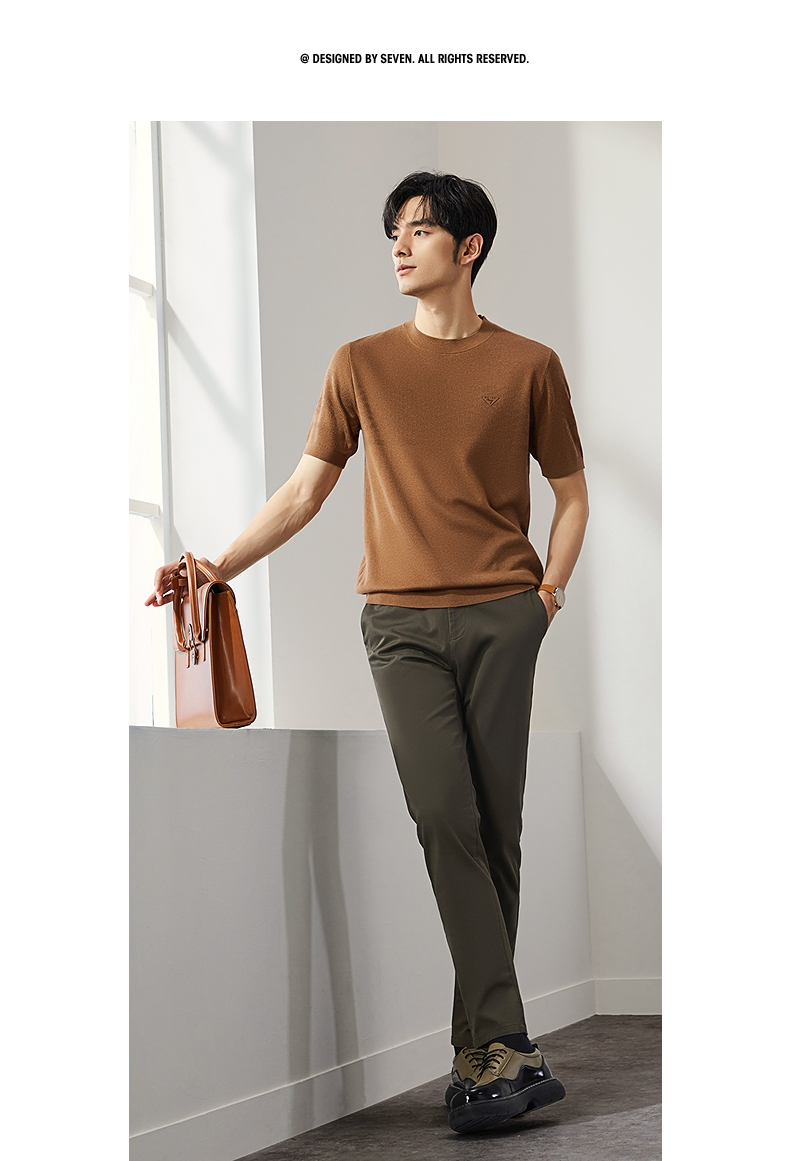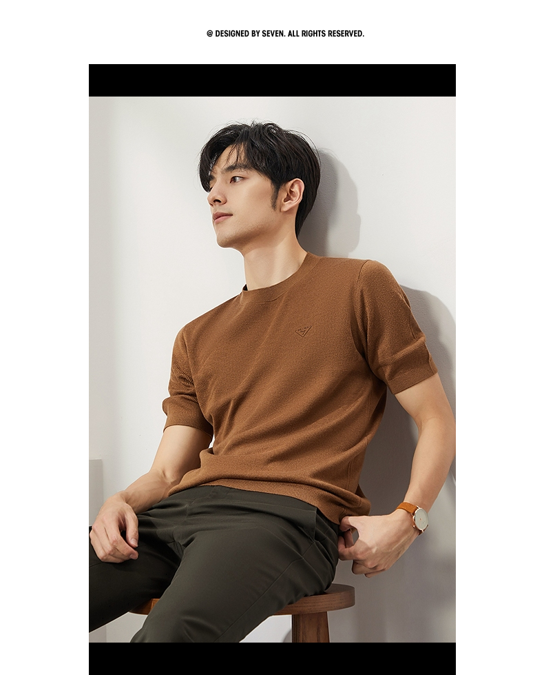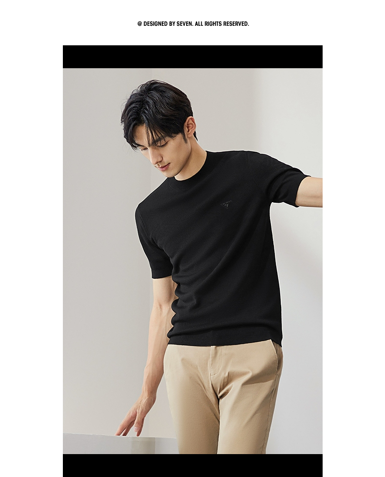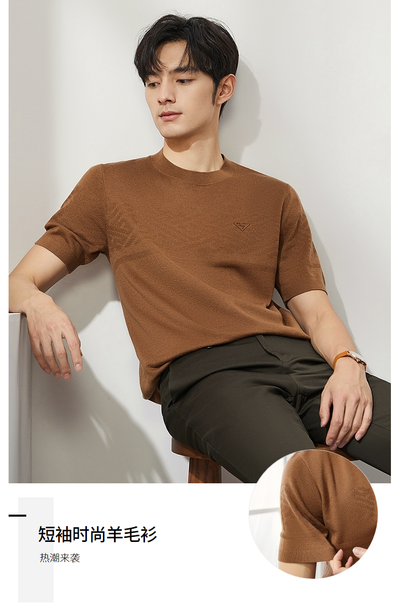 【特价】柒牌男士圆领羊毛衫2024秋季新款时尚休闲百搭保暖舒适短袖针织衫 127Y70410