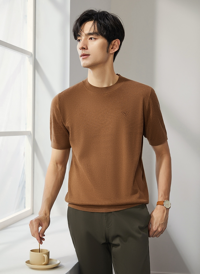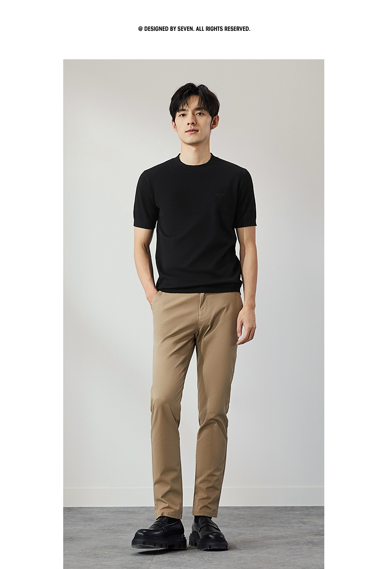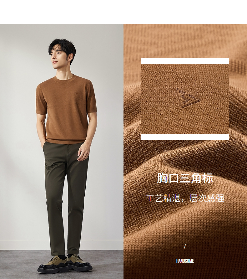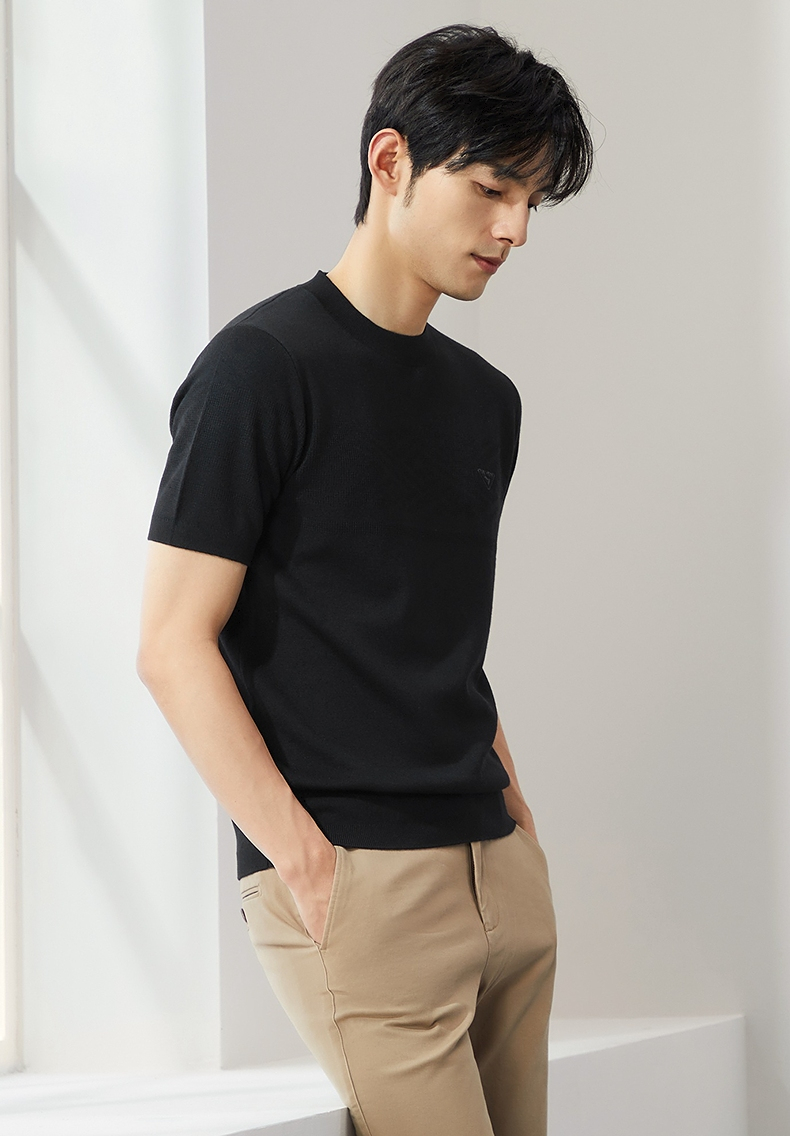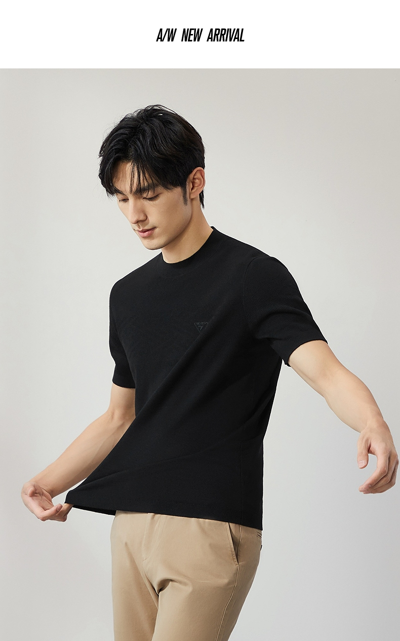 【特价】柒牌男士圆领羊毛衫2024秋季新款时尚休闲百搭保暖舒适短袖针织衫 127Y70410
