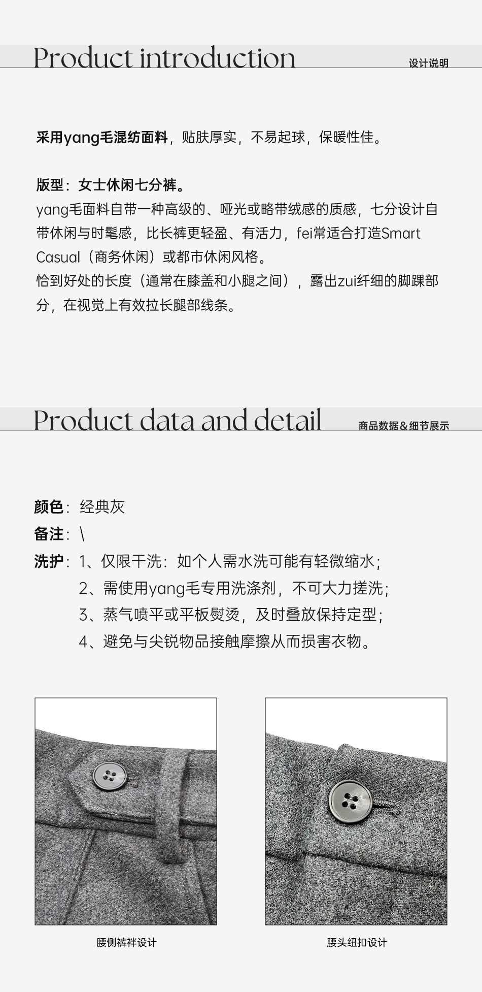余潇潇【高街出行】羊毛混纺都市休闲贴肤厚实时髦女士七分裤秋冬