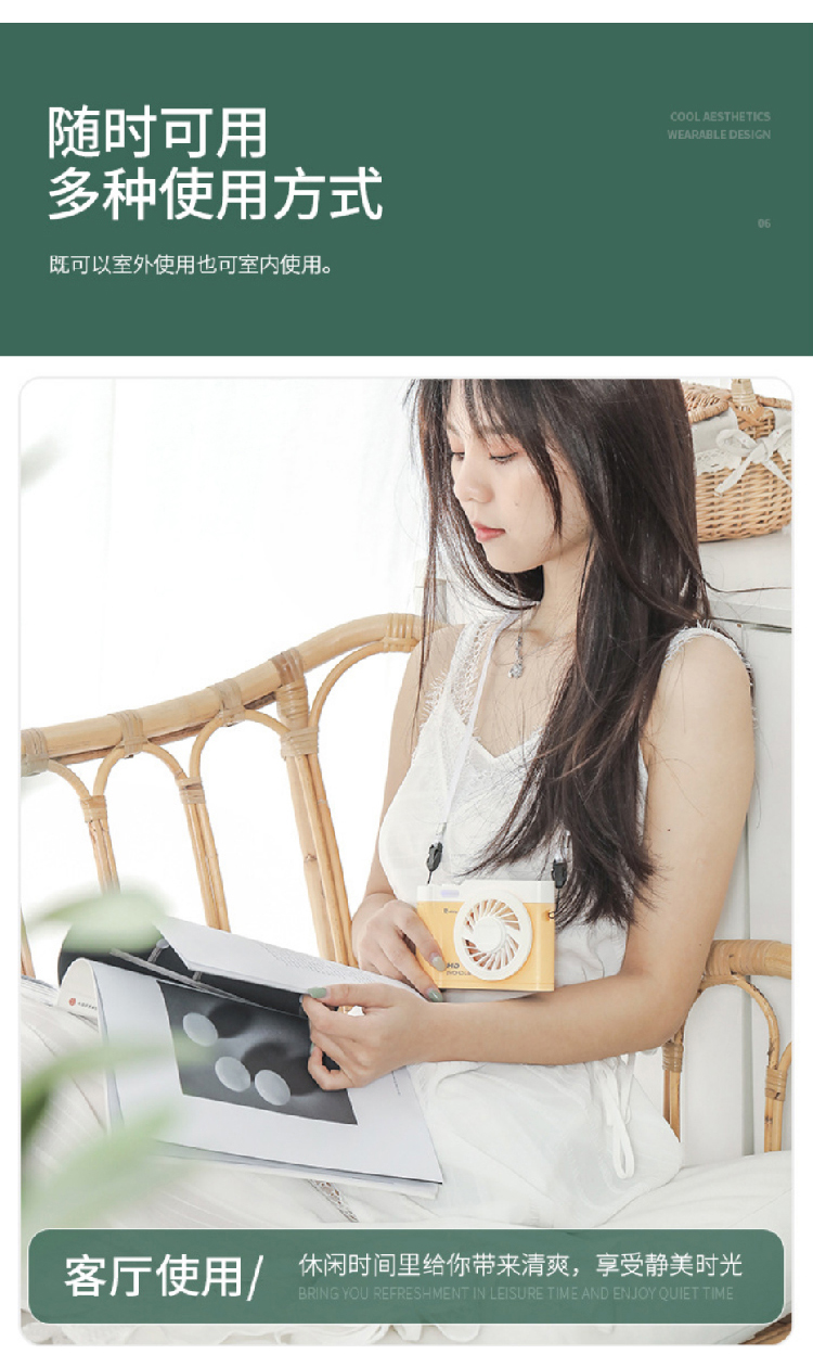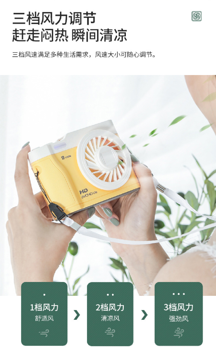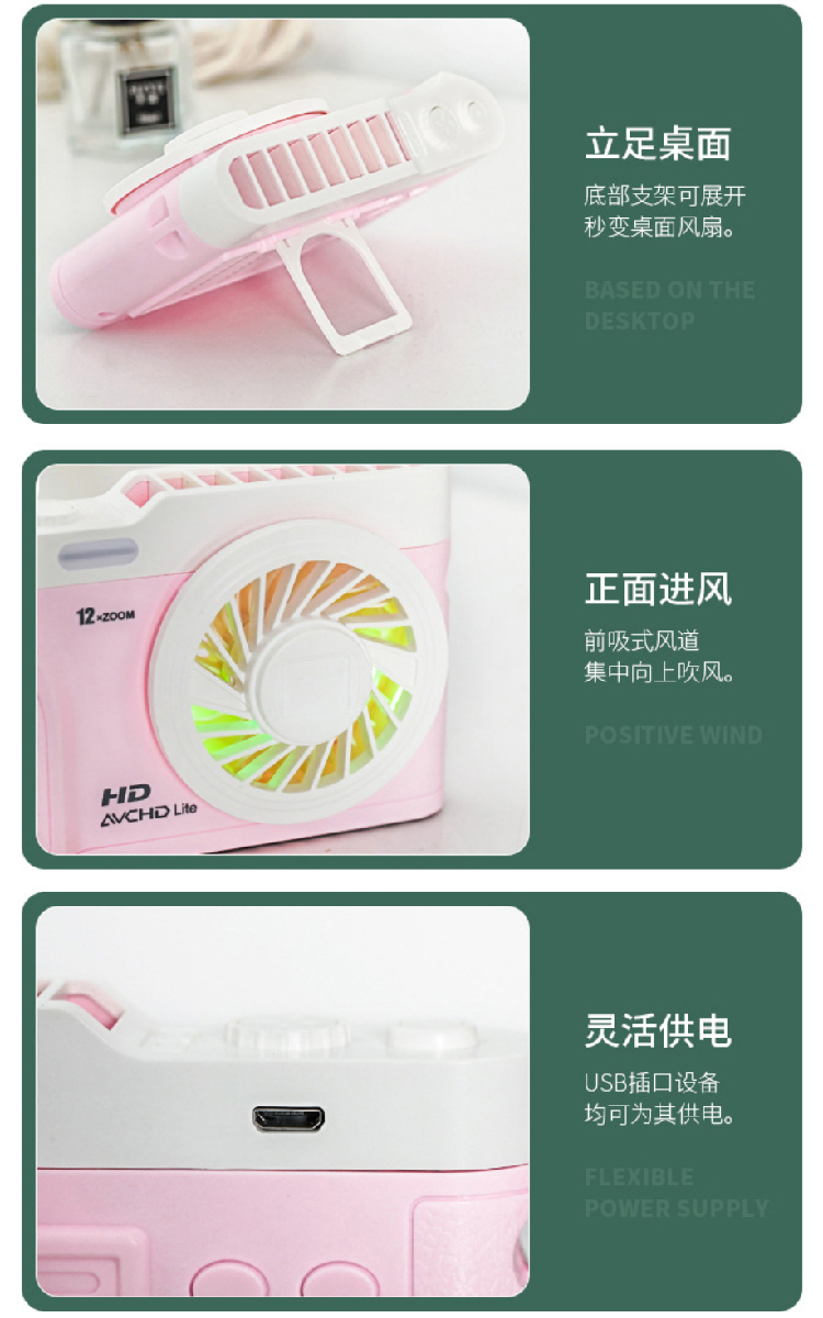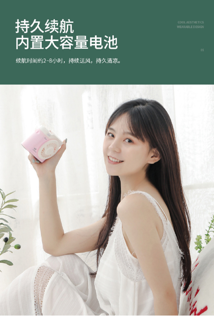 【抖音网红手持风扇】爆款照相机风扇外出挂脖风扇 充电便携USB办公室风扇