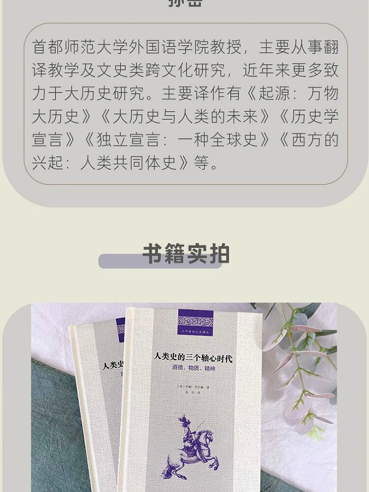 2. 作者在社会学与经济学间寻求平衡,对雅斯贝斯的哲学概念进行社会学化拓展,以道德、物质和心灵作为三重架构审视人类史,不仅展示了研究历史问题的新范式,也是借回顾历史之机,展示了人类在历史中所表现出的自由和潜能。