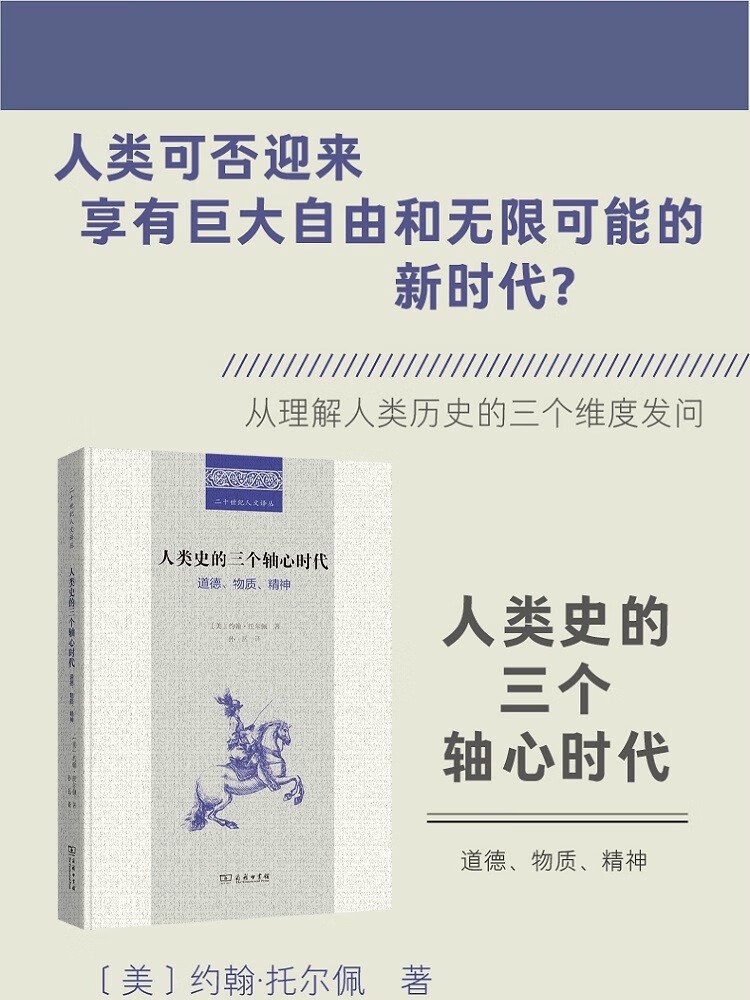 德国思想家雅斯贝斯在其著作《论历史的起源与目标》中认为,公元前五百年前后在东西方均出现了人类文化突破现象,他把这一时期称为“轴心时代”。本书作者约翰·托尔佩在雅斯贝尔斯“轴心时代”理论的基础上进一步指出,公元前五百年前后的“轴心时代”仅仅是三个直接影响当代社会问题的关键时期之一。他认为,不是只有一个原初的“轴心时代”及其后续发展,而是存在着三个“轴心时代”,每一个时期都直接影响了人类的生活和人类要面对的问题。早期的轴心时代的关键词是道德,强调宗教和道德发展;第二个轴心时代的关键词是物质,关注的是物质对象的生产和使用;第三个轴心时代的关键词是精神,聚焦于技术。