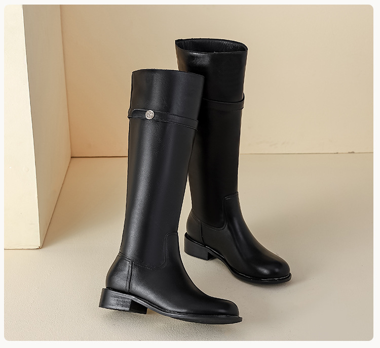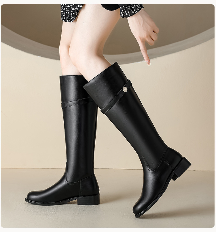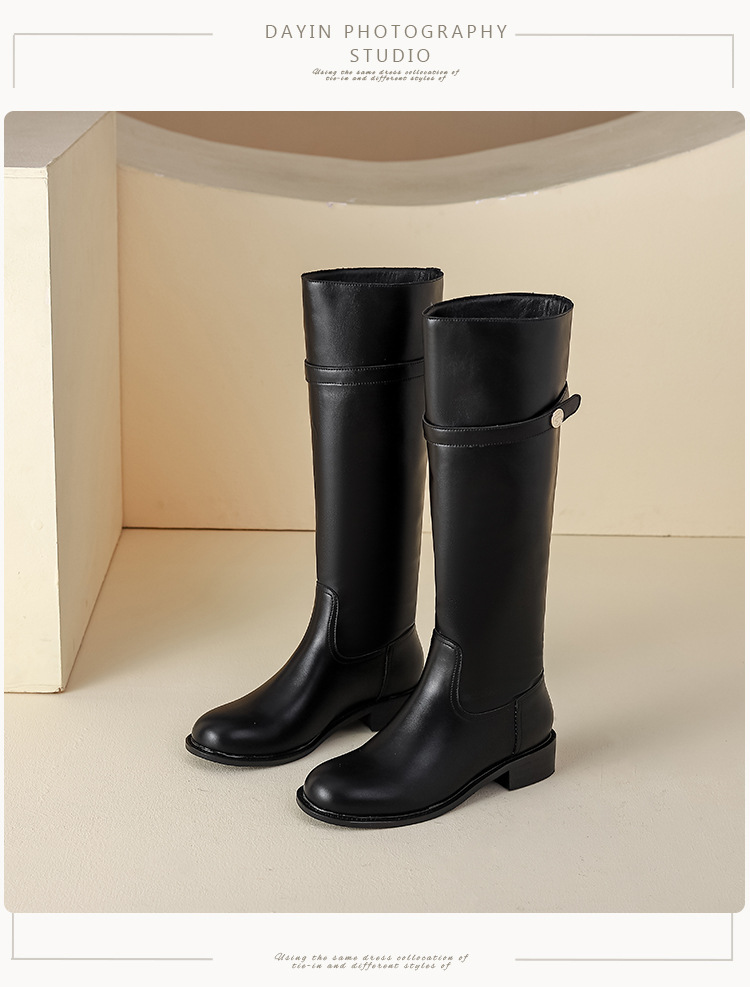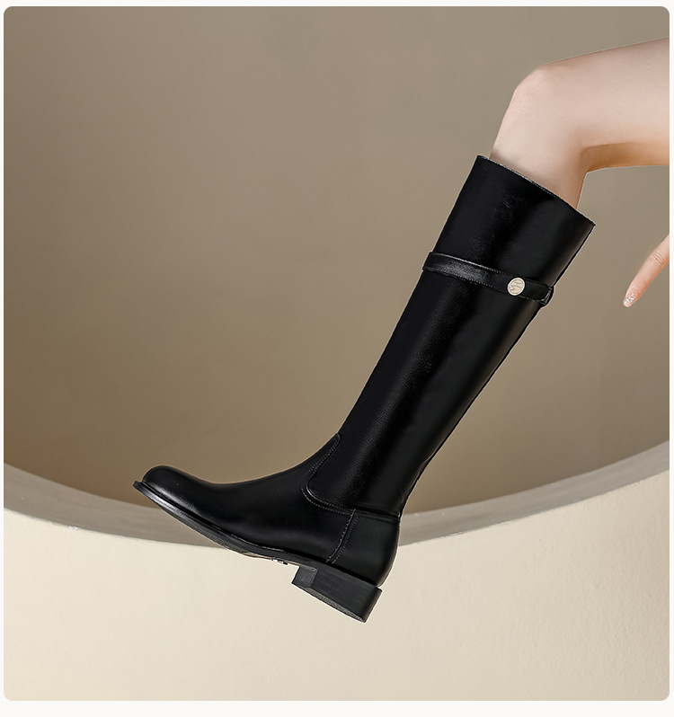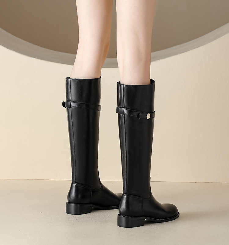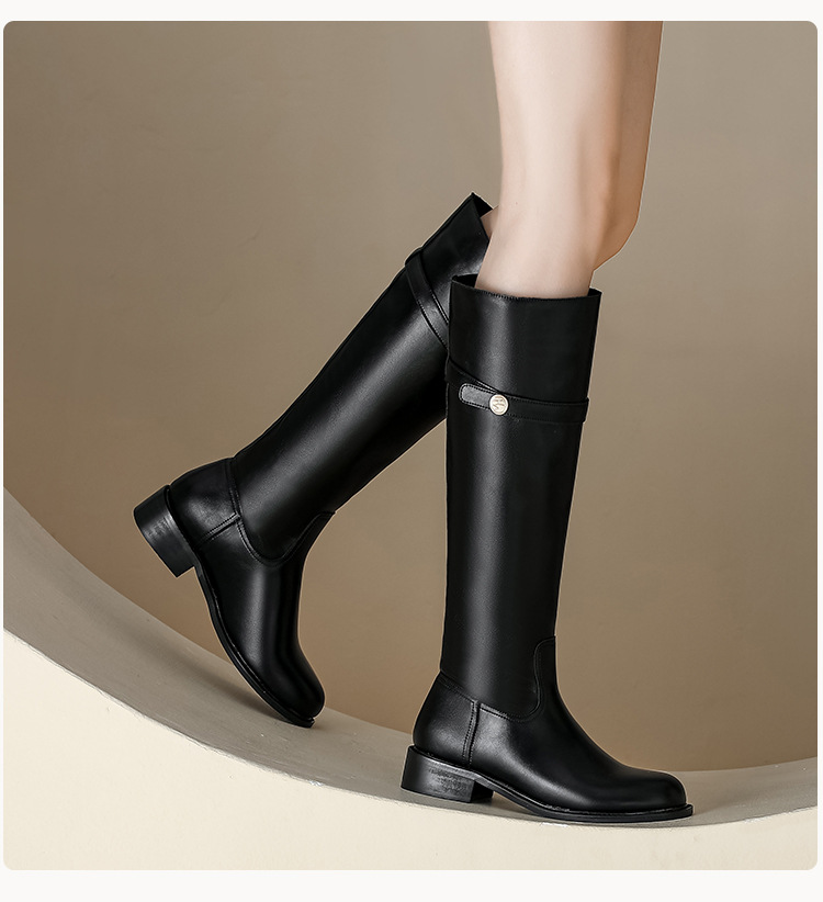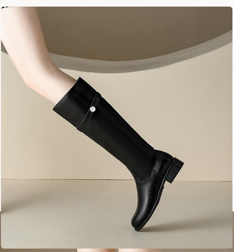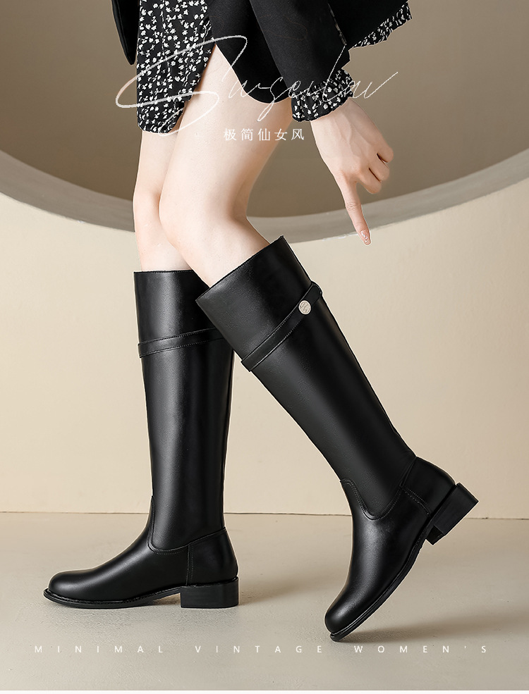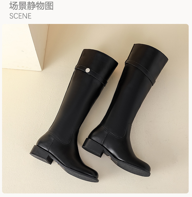 【女鞋专场】小众粗跟套筒不过膝长靴女2023年新款韩版高筒骑士靴小金扣女皮靴