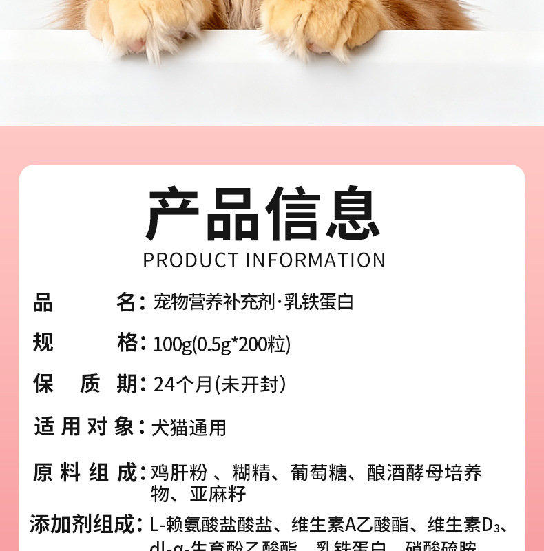 宠安仕乳铁蛋白片100g提高免疫犬猫通用保健品批发【全渠道销售】