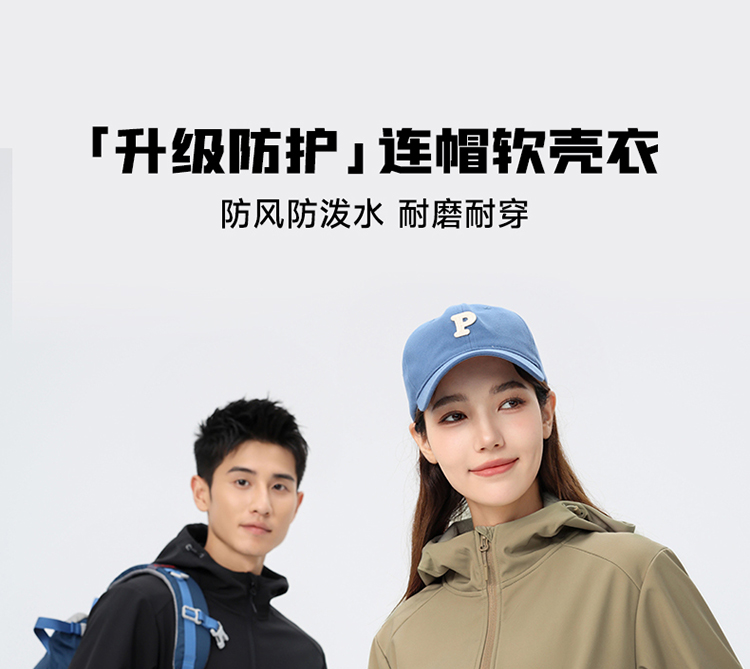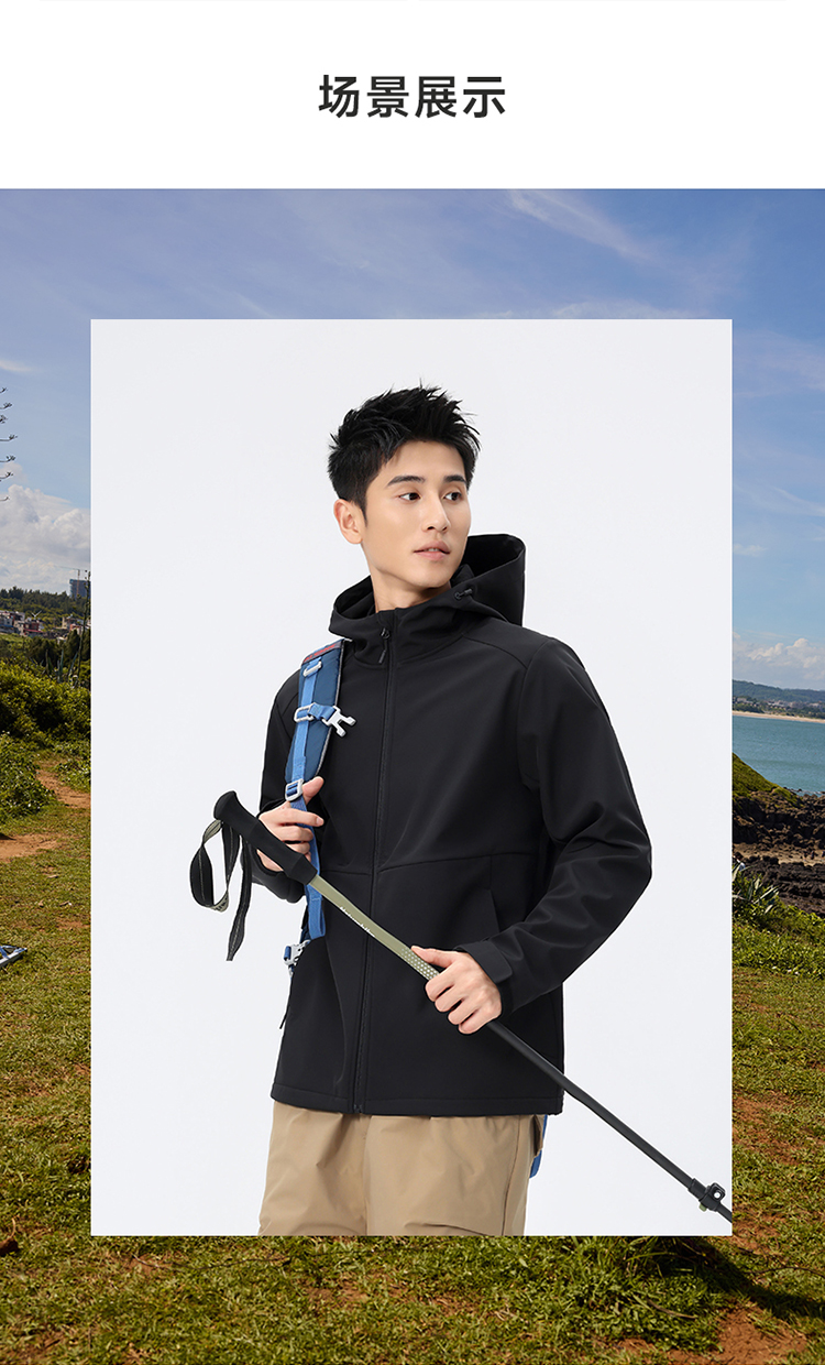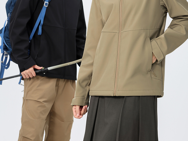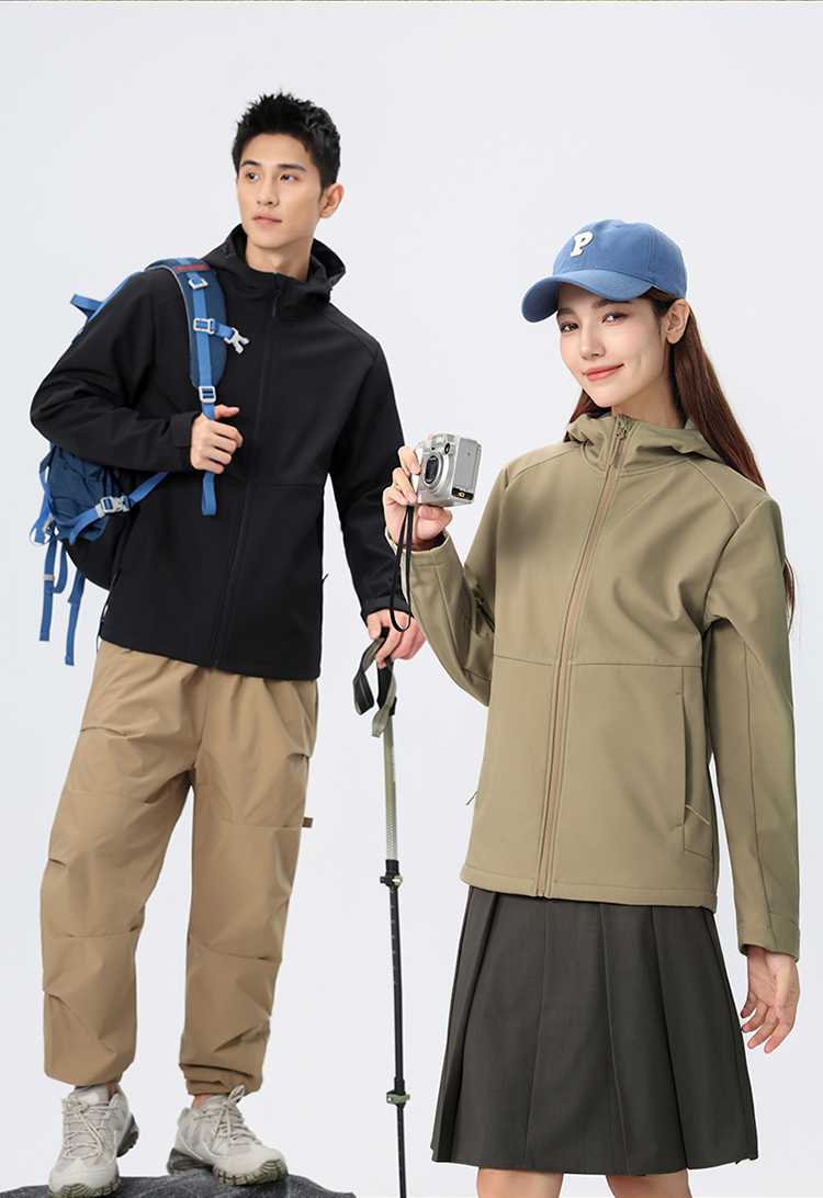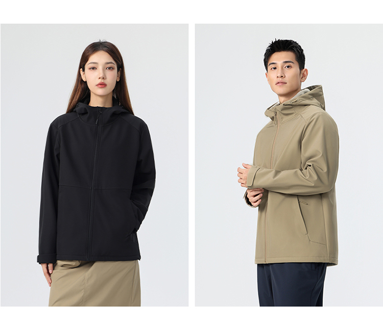 【实付满399送保温杯】【防泼水暖绒软壳风衣外套】男女同款户外通勤外套连帽休闲登山服防风保暖长袖上衣WT506