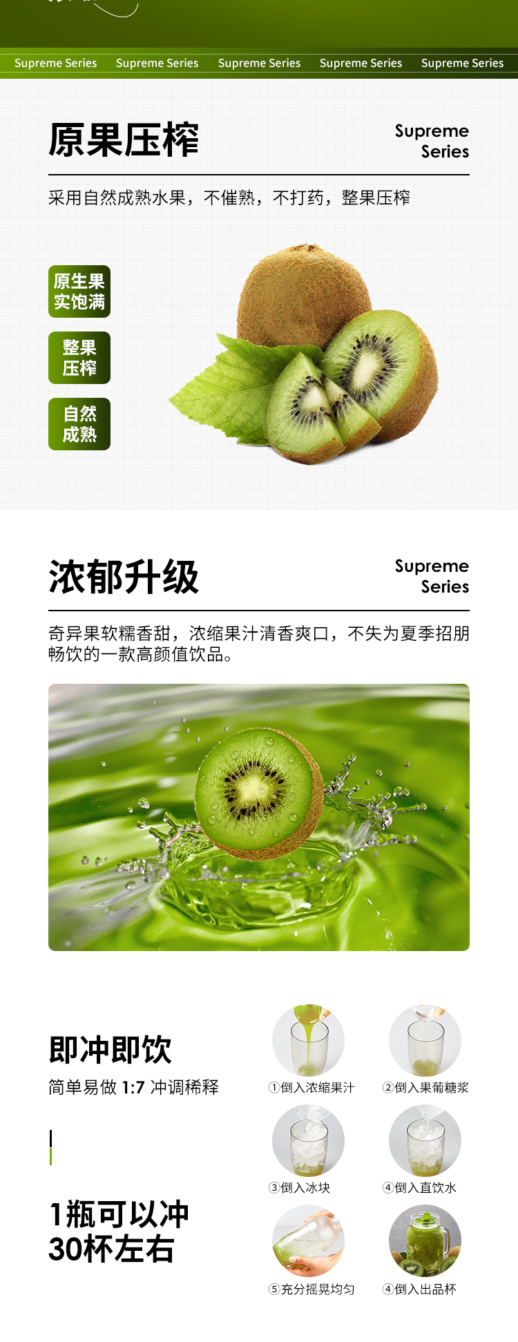 【经销商专区】【爵世果汁系列】奇异果饮料浓浆1200克/瓶 天然水果糖浆奇异果汁