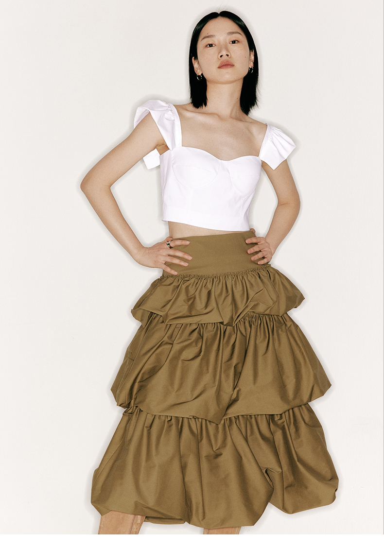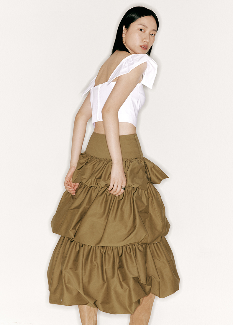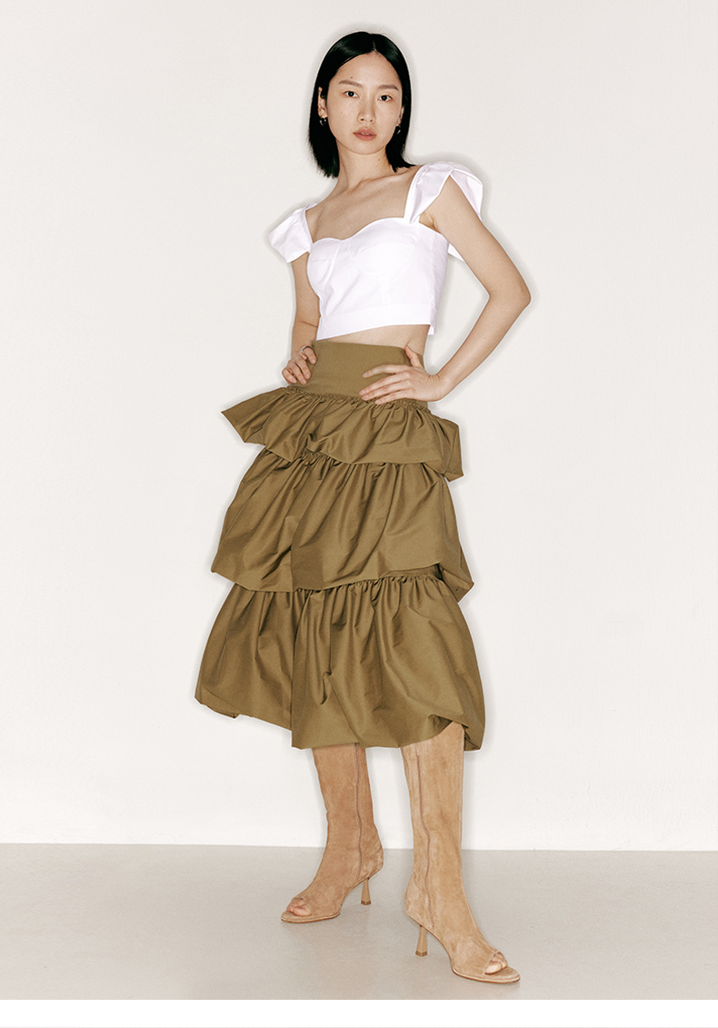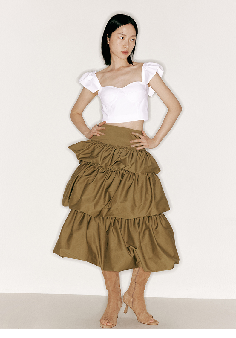 【千层甜心】层叠花苞设计高腰蛋糕裙/2300020