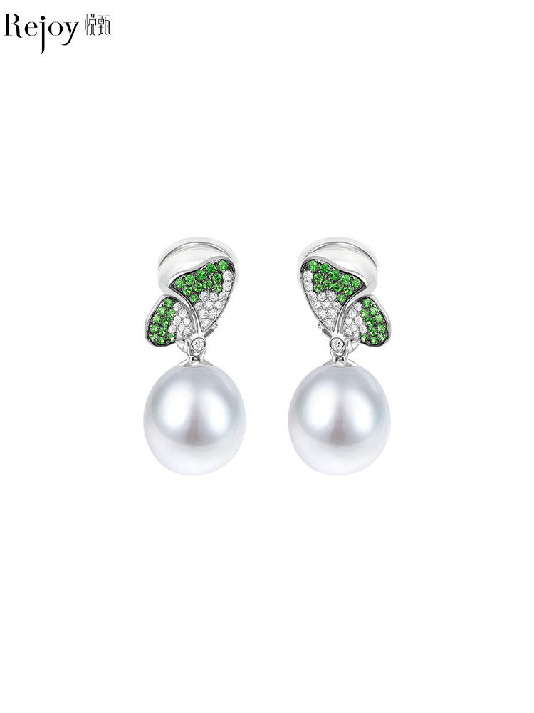 【挚友限定】 18k金澳白沙弗莱钻石耳夹 蝶舞(11-12mm水滴珠)