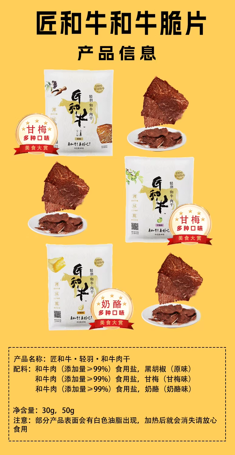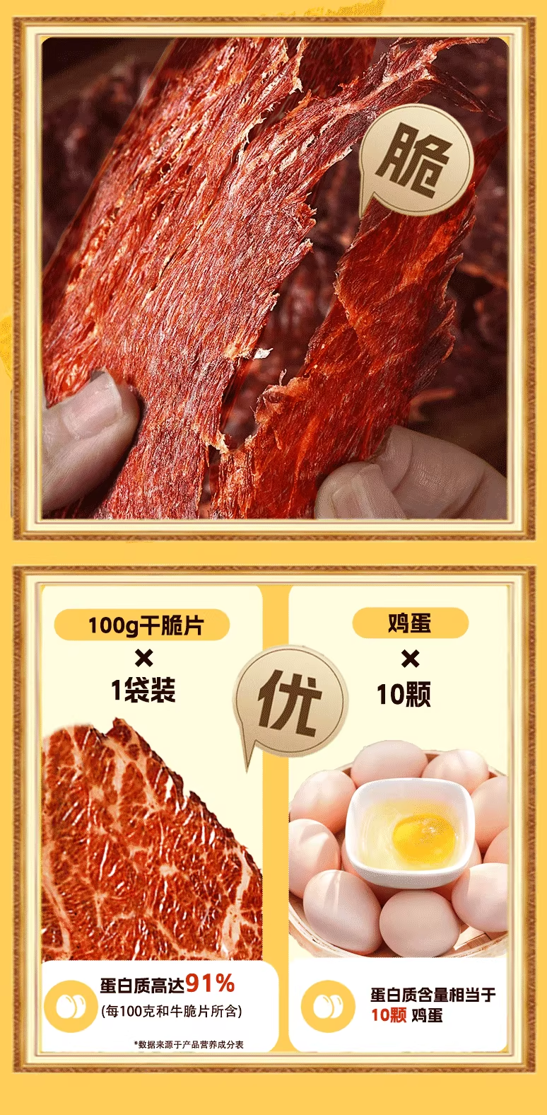 牛肉片匠和牛牛脆脆油脂丰富酥脆口感牛肉干高蛋白零食