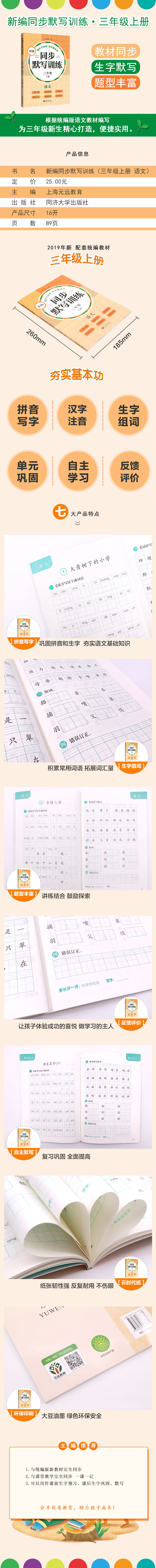 部编版新编同步默写训练 语文 三年级上册/3年级第一学期 人教统编版小学语文教材同步默写练习句子汉字拼音 同济大学出版社