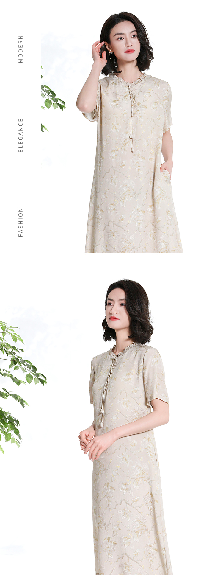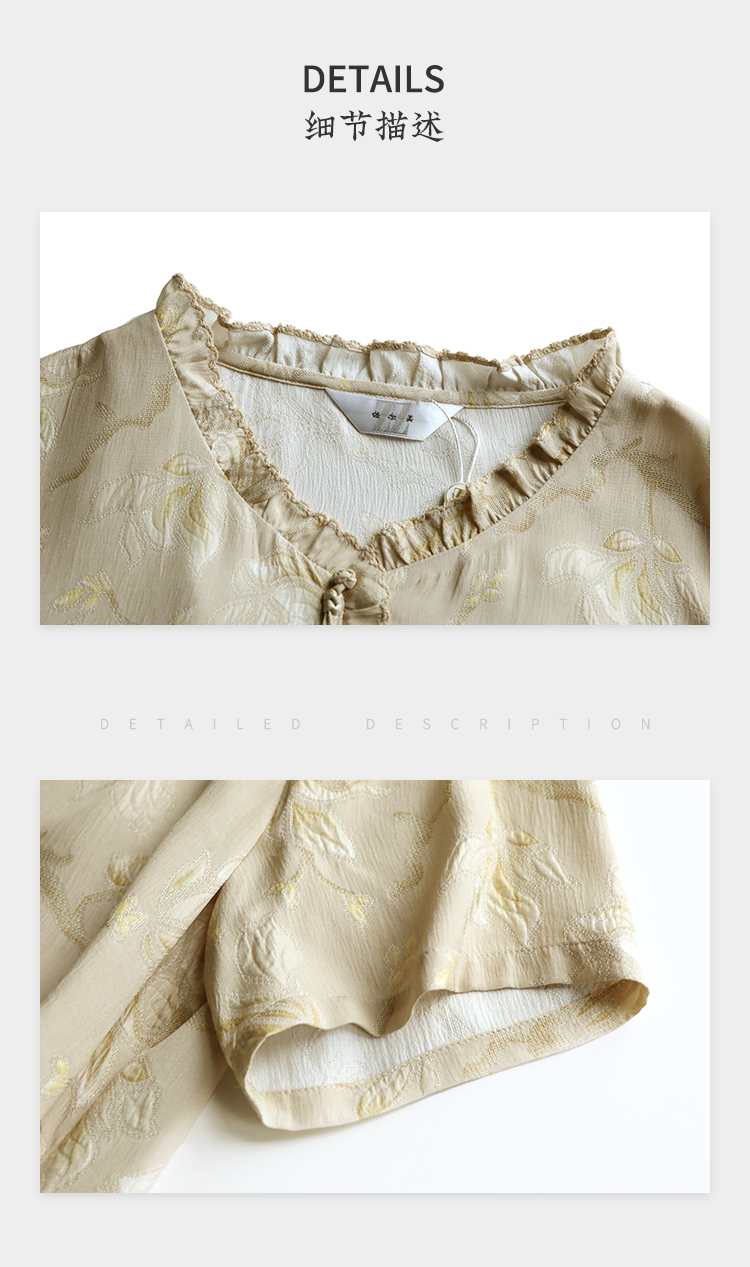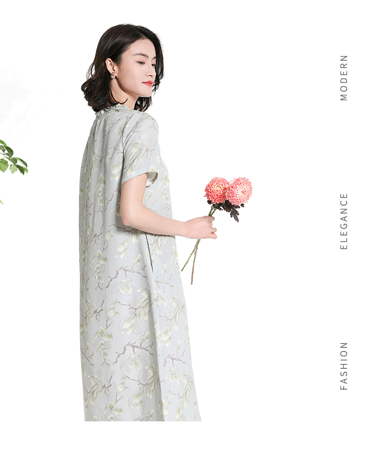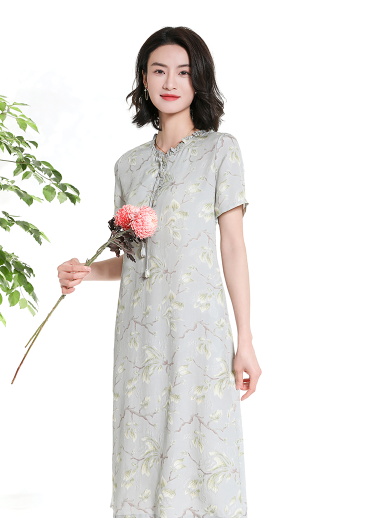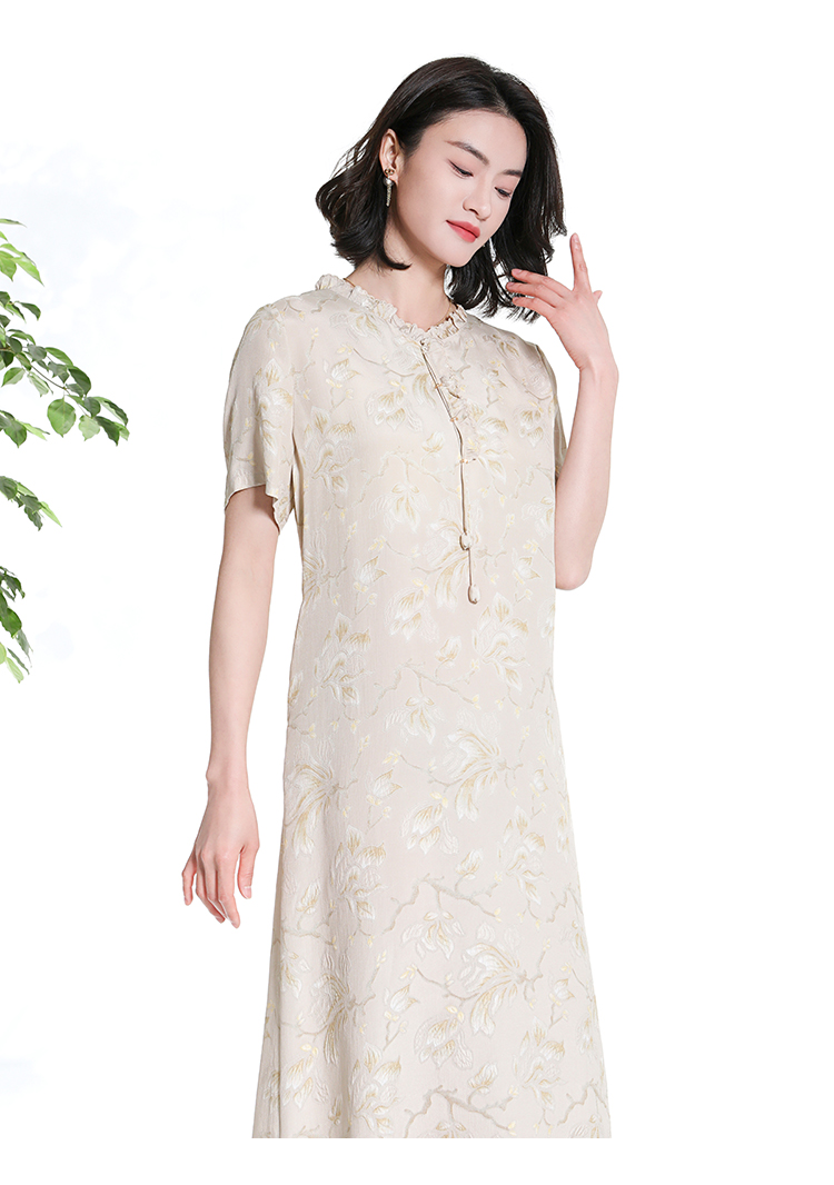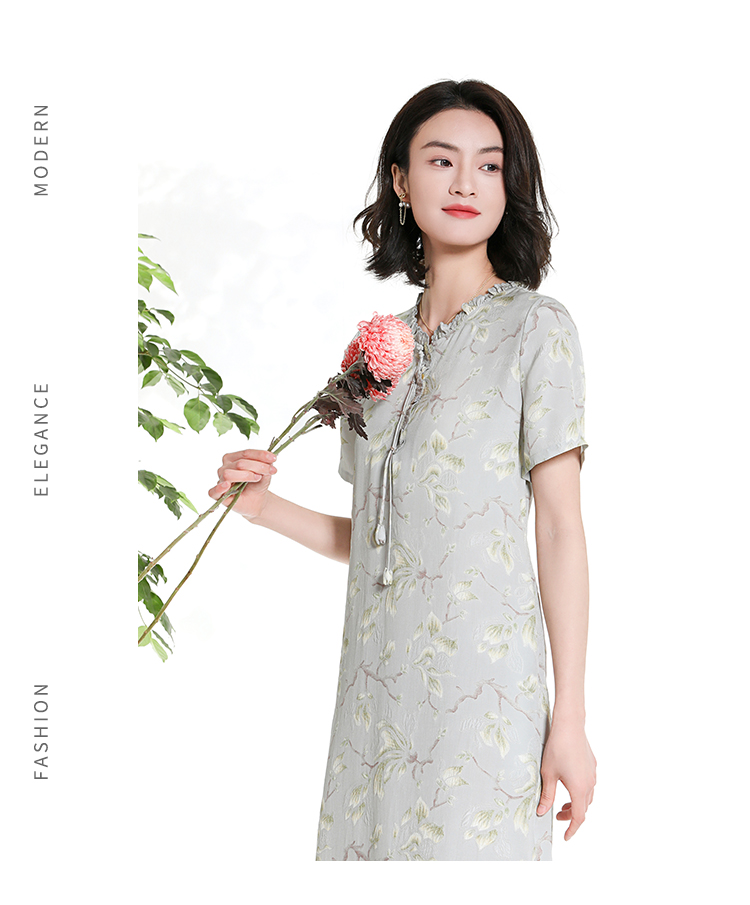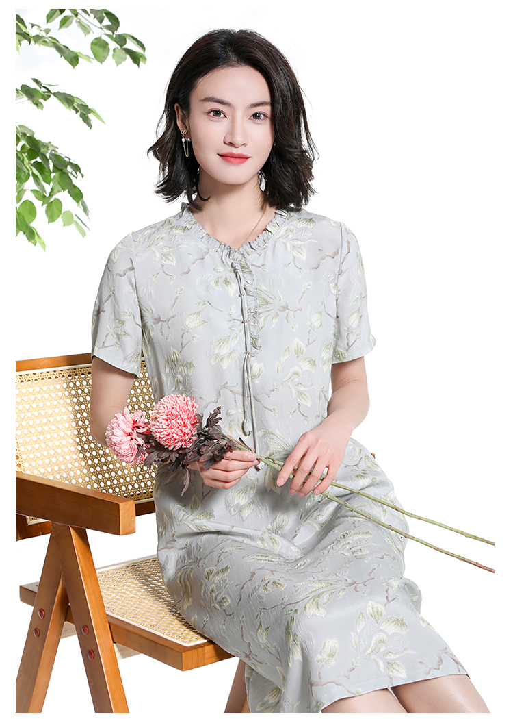 佐尔美夏季新款新中式国风碎花桑蚕丝短袖连衣裙女M42LS88
