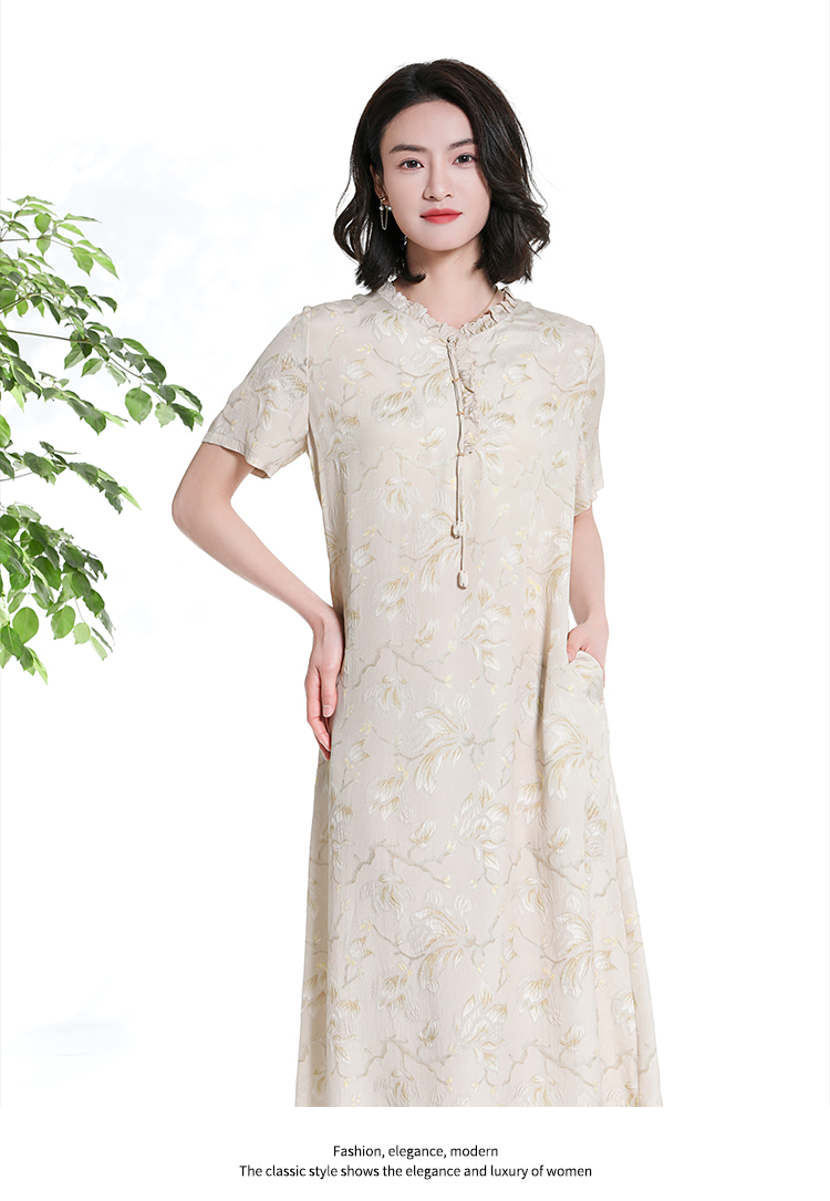 佐尔美夏季新款 桑蚕丝真丝提花缎中袖连衣裙女E22LS54