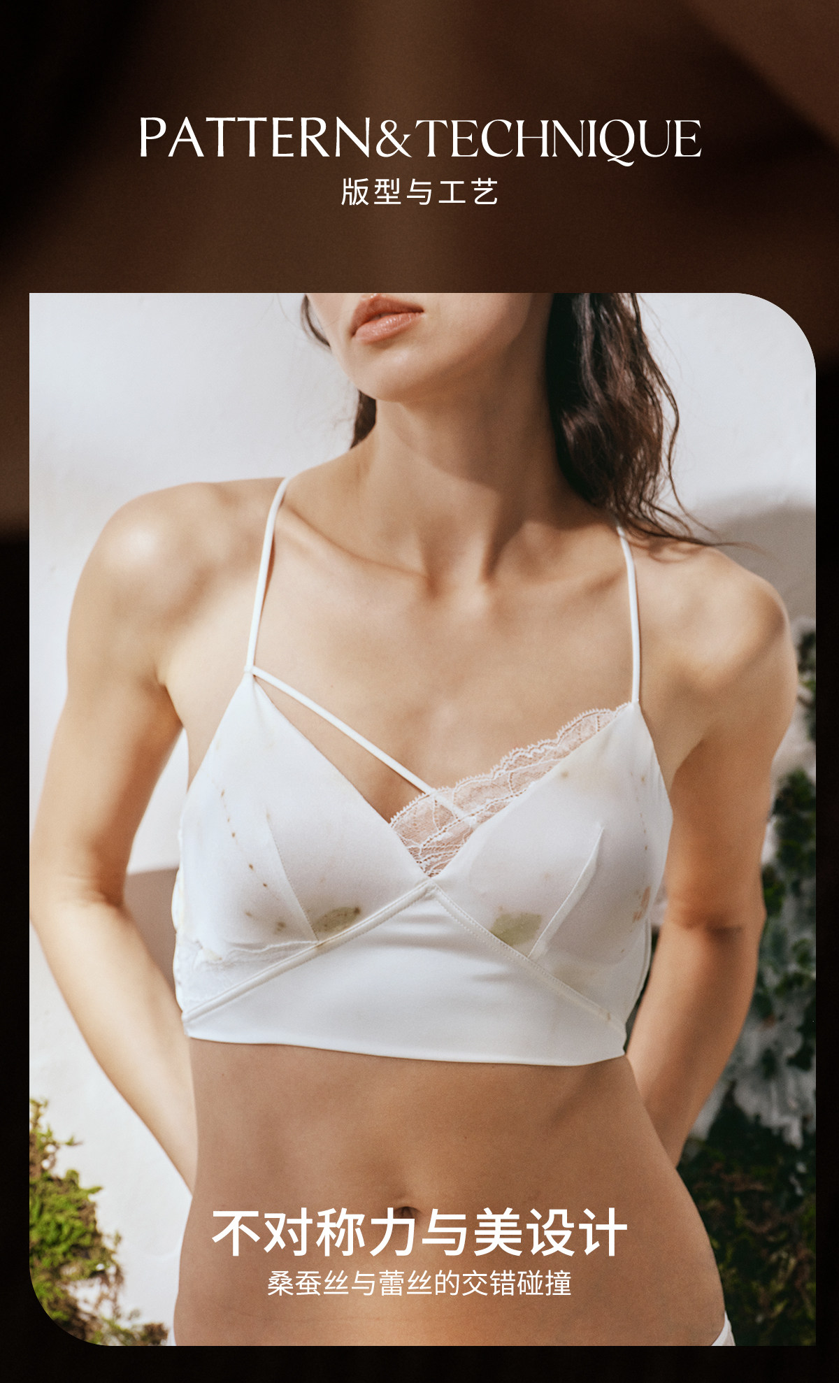 里性 LIVARY MIO 对白 蕾丝真丝无钢圈内衣可外穿不对称设计背心