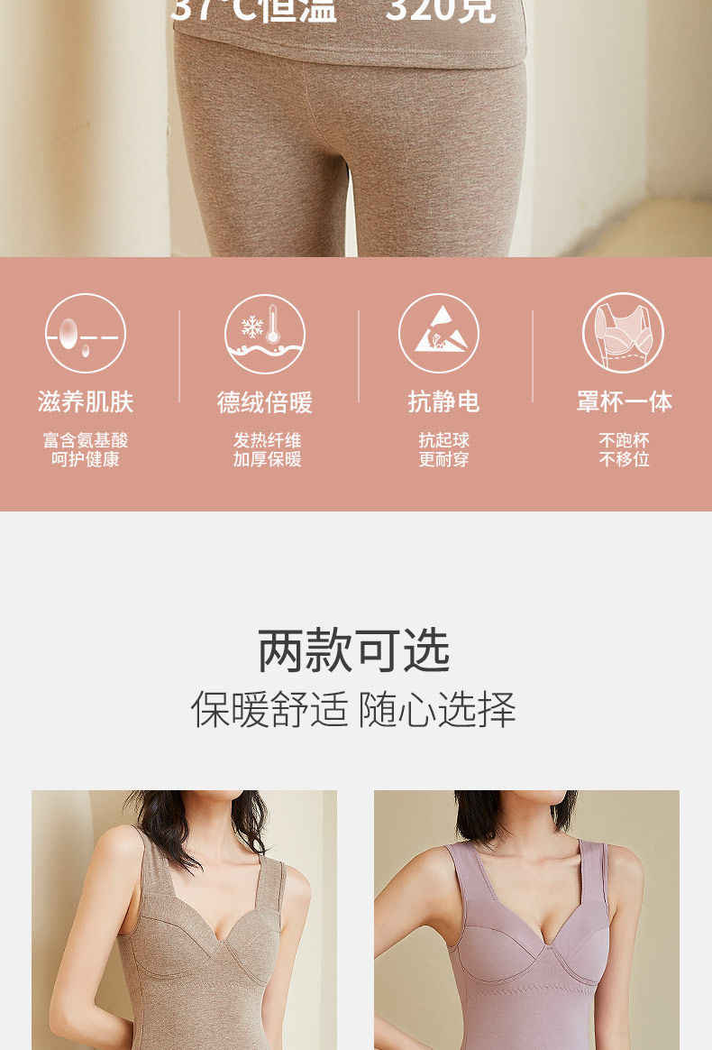 【爆款超低价预售 急单慎拍】【自带胸垫】德绒发热保暖内衣女士加绒加厚冬季无痕塑身打底背心