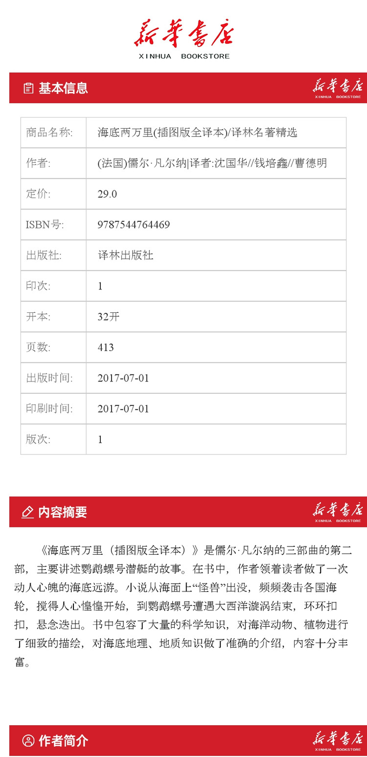 【新华书店旗舰店官网】正版 海底两万里(插图版全译本)/译林名著精选
