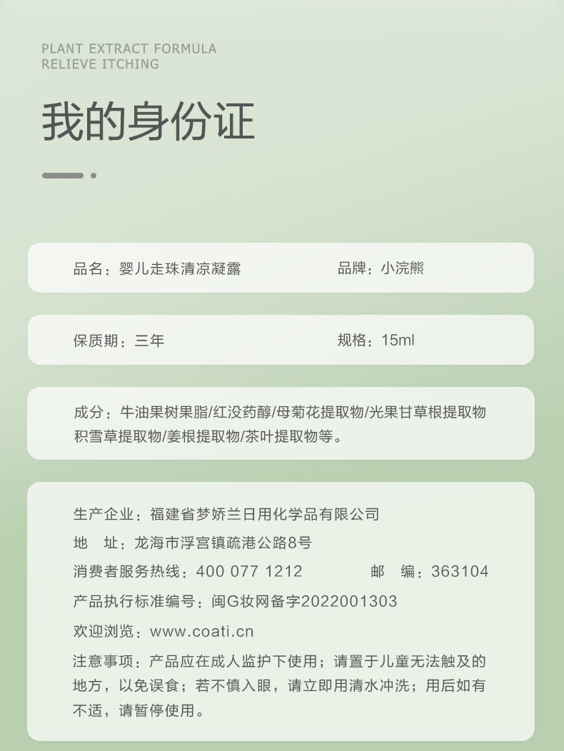 小浣熊婴儿舒缓凝露15ml蚊虫叮咬缓解棒