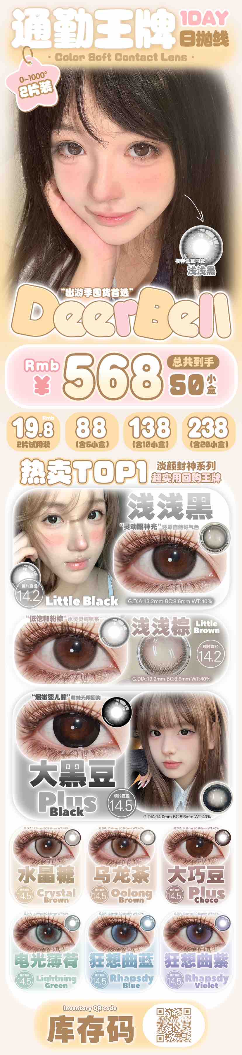 【日抛:2片装试戴】deerbell 日抛自然通勤款 14.2/14.5