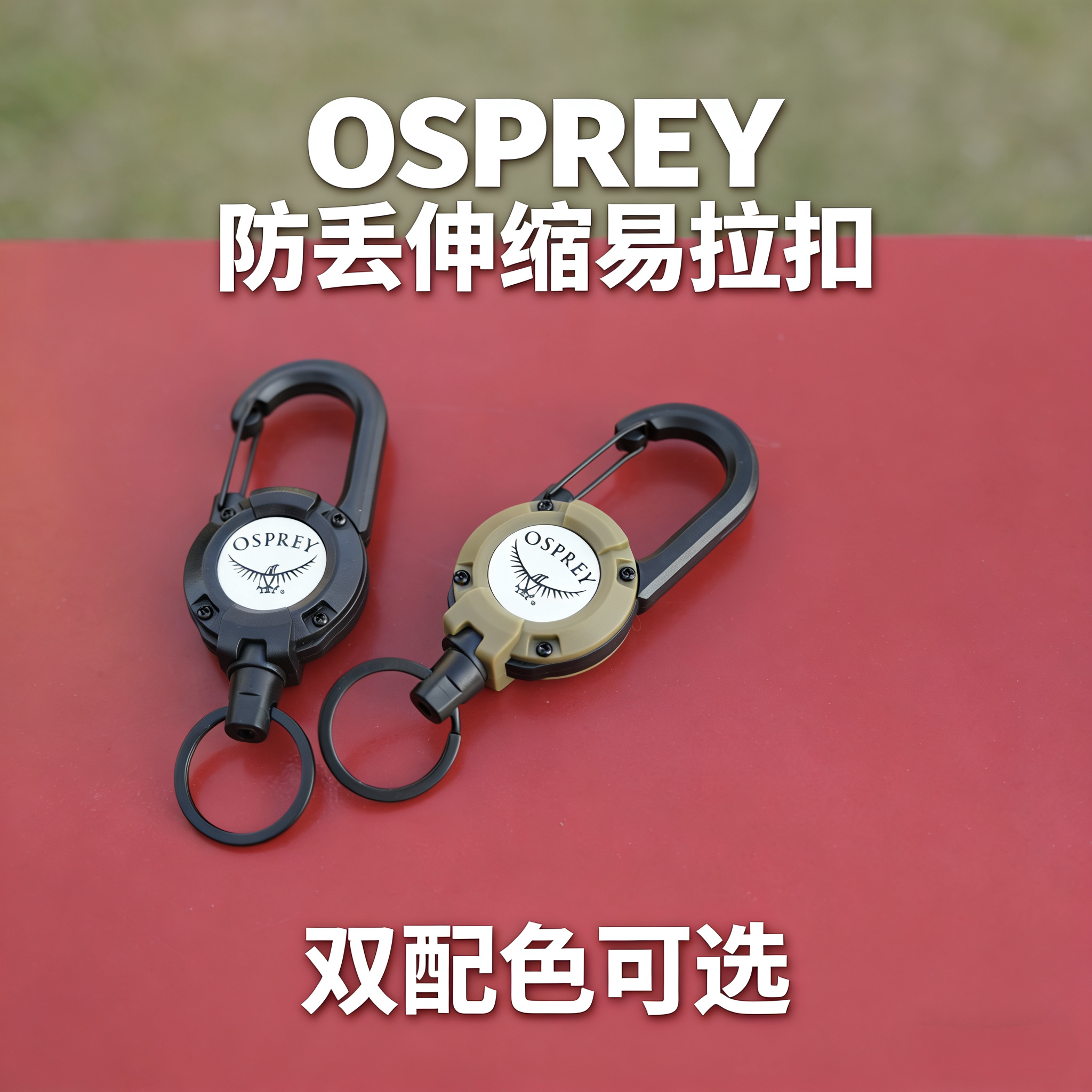 OSPREY户外露营路亚高回弹伸缩易拉扣钢丝绳子钥匙扣锁扣挂钩防丢失登山扣【tbzg】