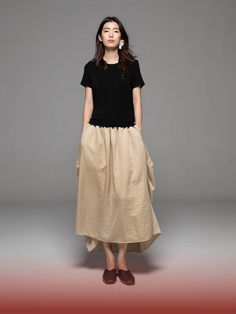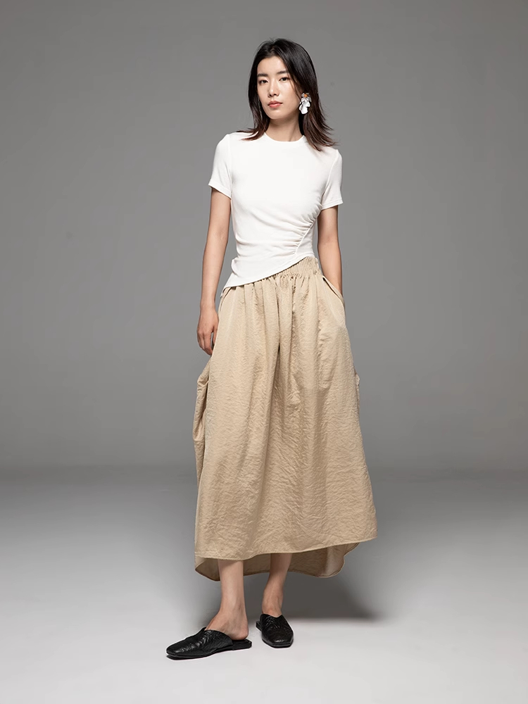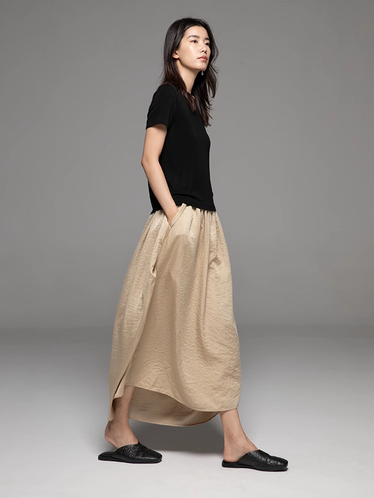 LIYIHAN设计师品牌 24春夏新款原创气质优雅褶皱松紧腰半身裙