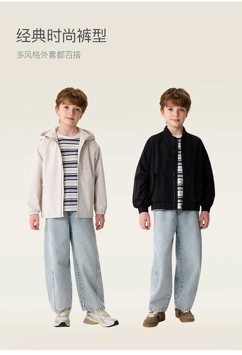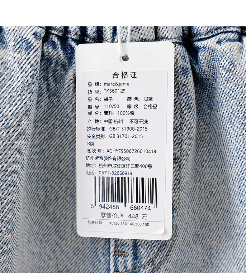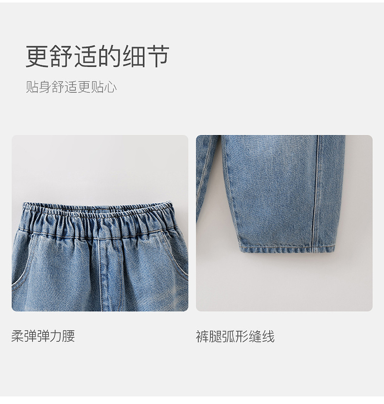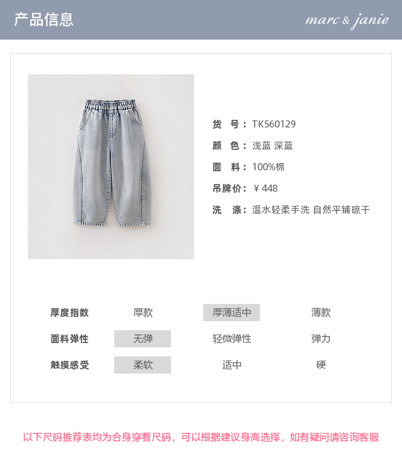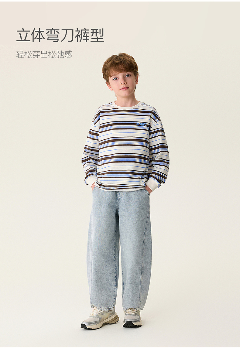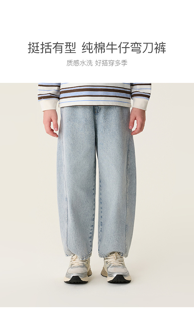 马克珍妮挺括有型男女童纯棉牛仔弯刀裤2026年春装新款560129