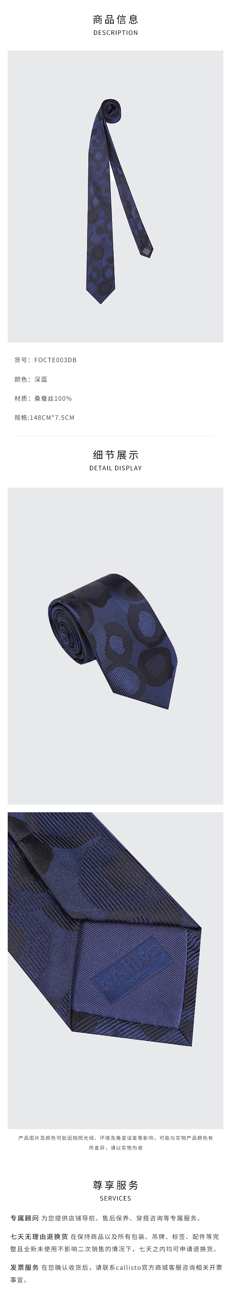 callisto深蓝全桑蚕丝领带 FOCTE003DB
