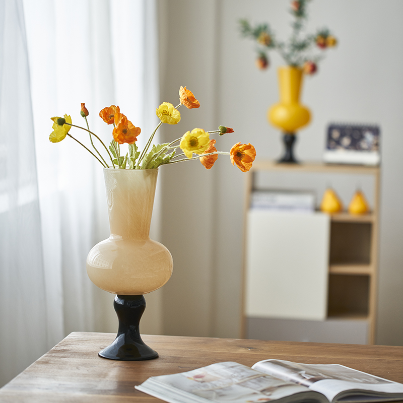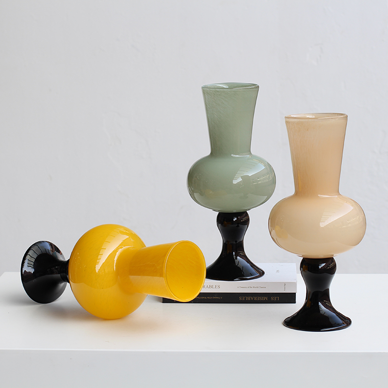 中古风芬顿琉璃高脚风灯花瓶客厅高级感水培鲜花法式轻奢风软装瓶
