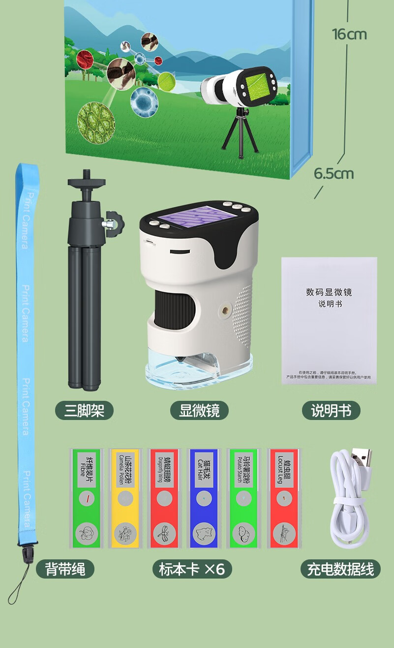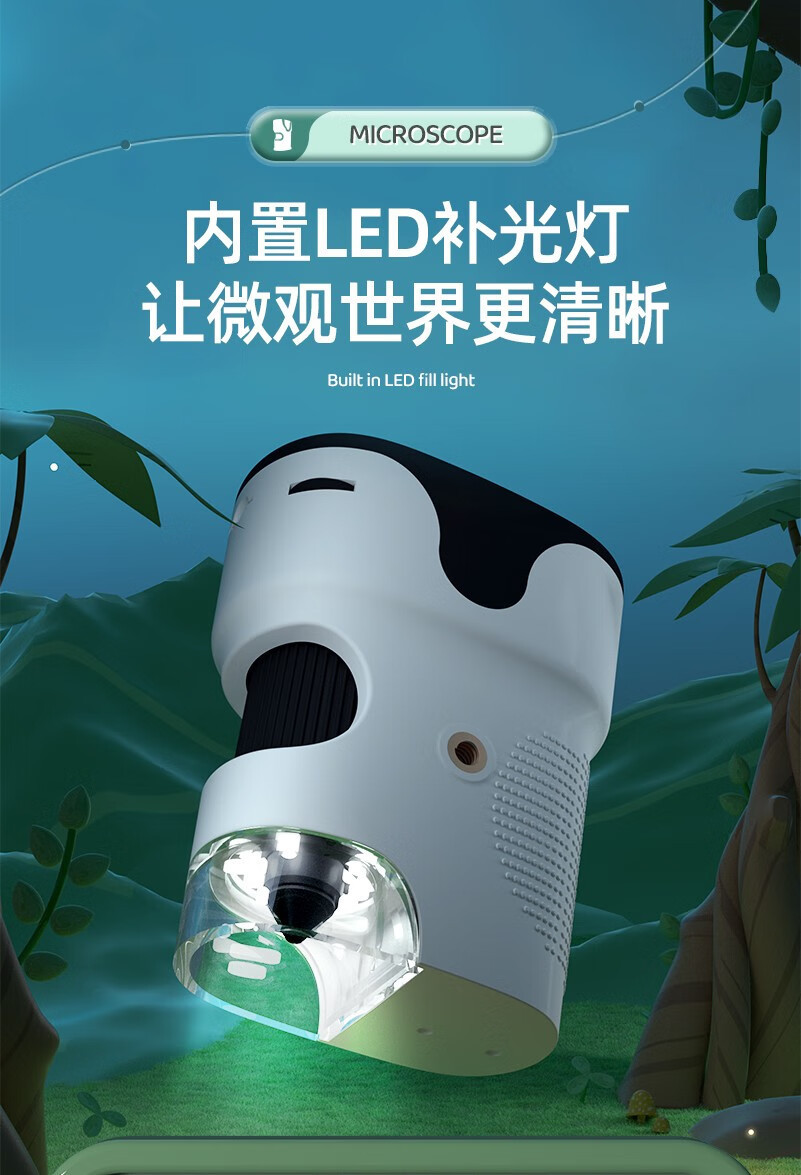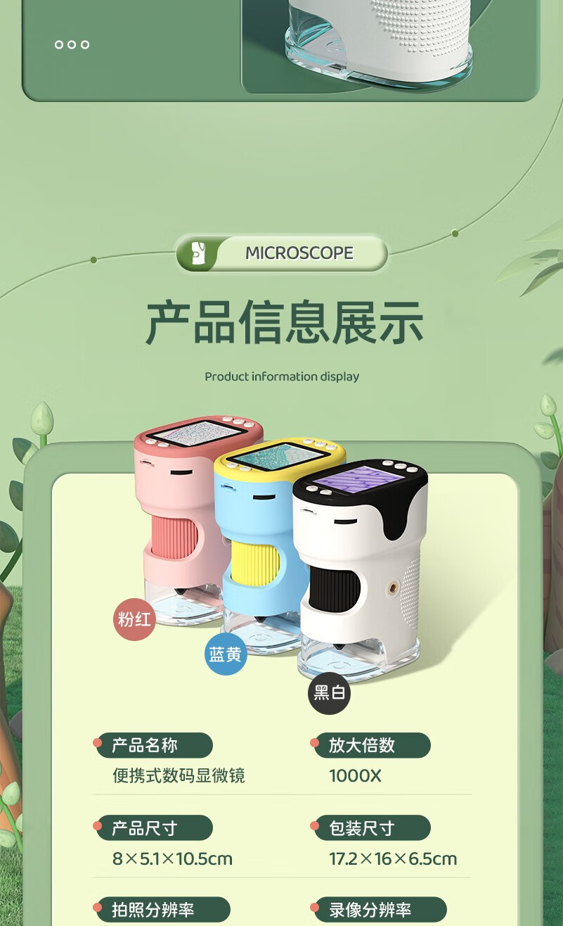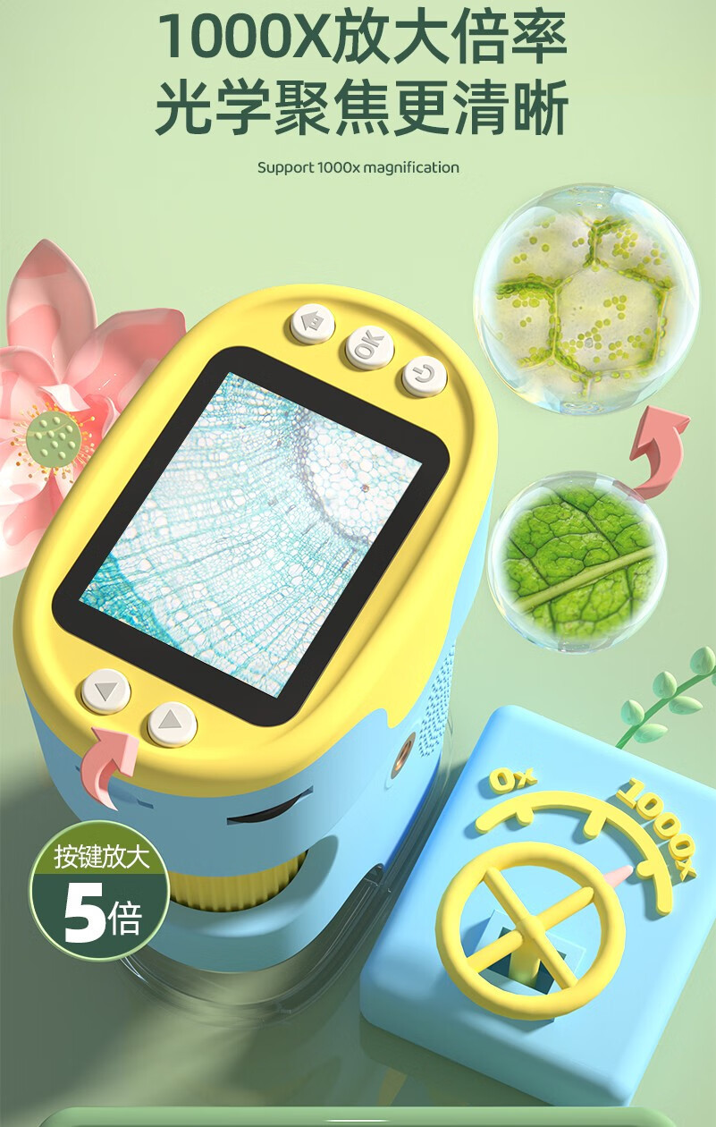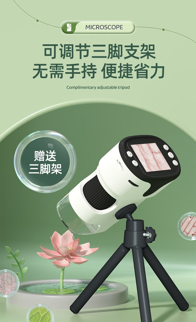 【赠三脚架+32G内存卡】手持显微镜+望远镜二合一 1000倍放大 高清显示屏 可拍照视频分享的科技STEAM教具 随时随地看世界
