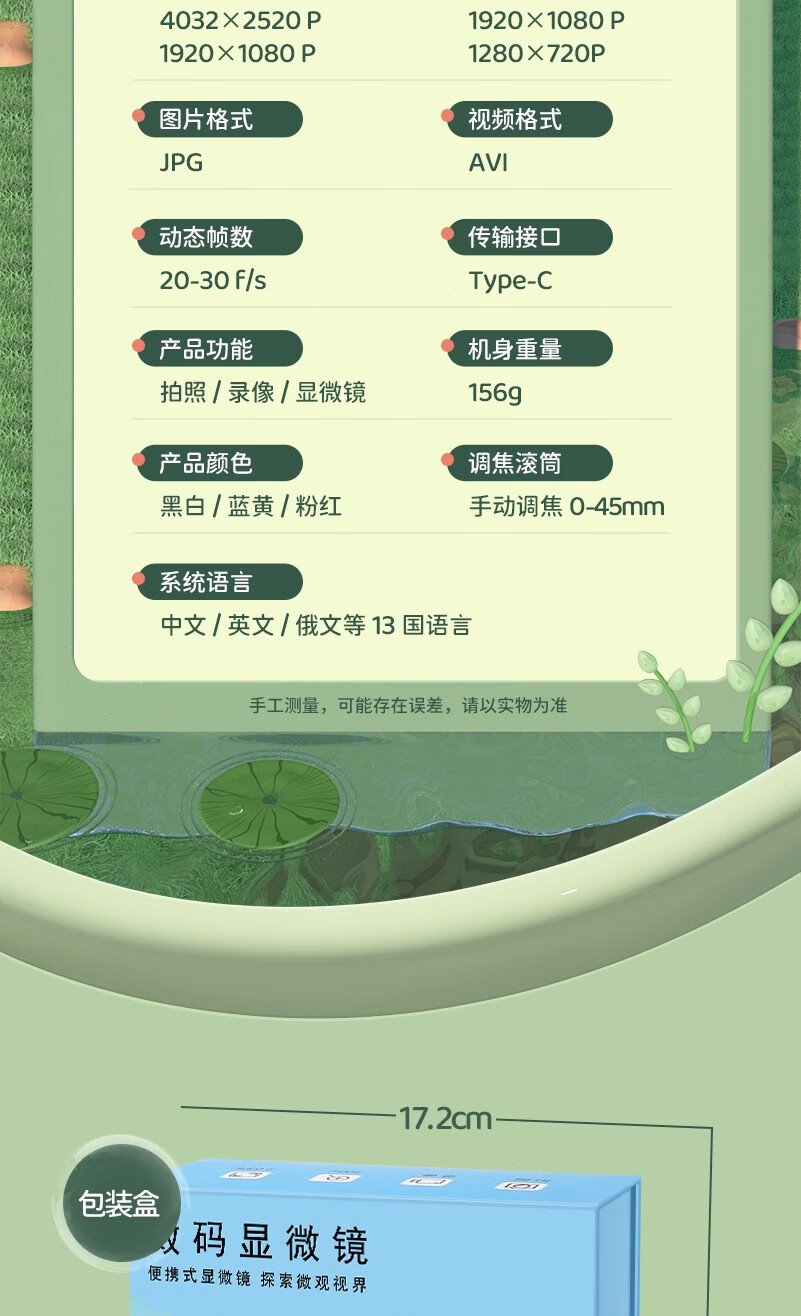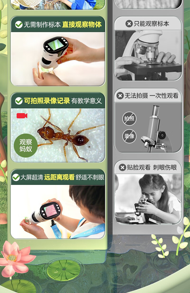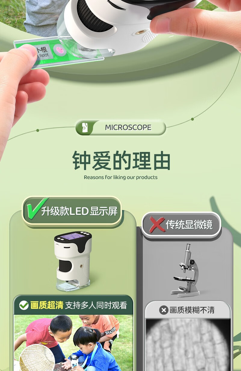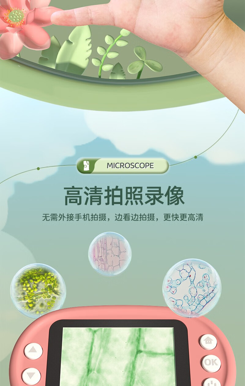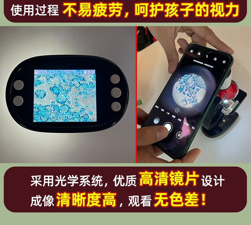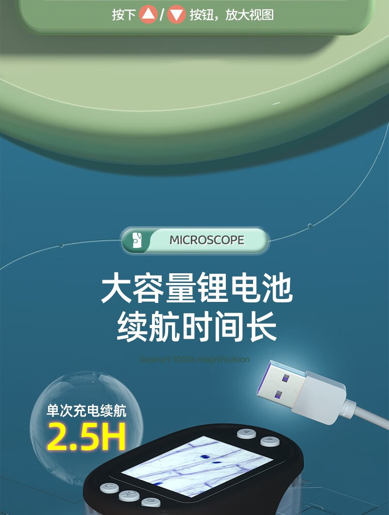 【赠三脚架+32G内存卡】手持显微镜+望远镜二合一 1000倍放大 高清显示屏 可拍照视频分享的科技STEAM教具 随时随地看世界