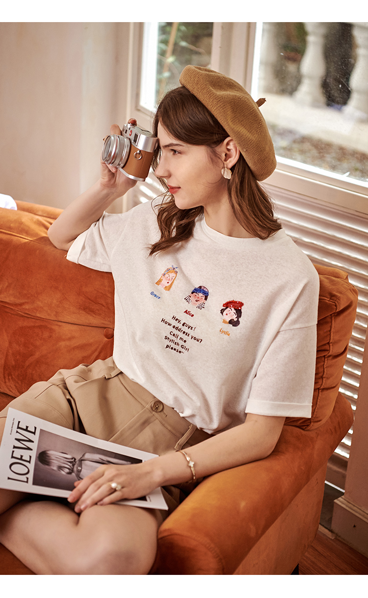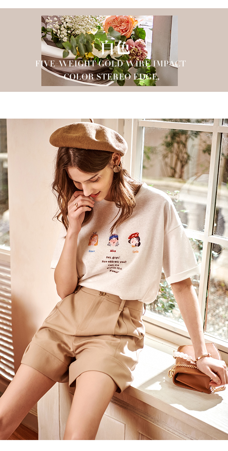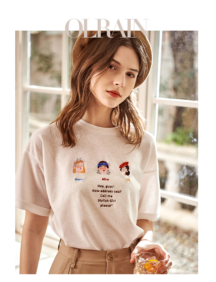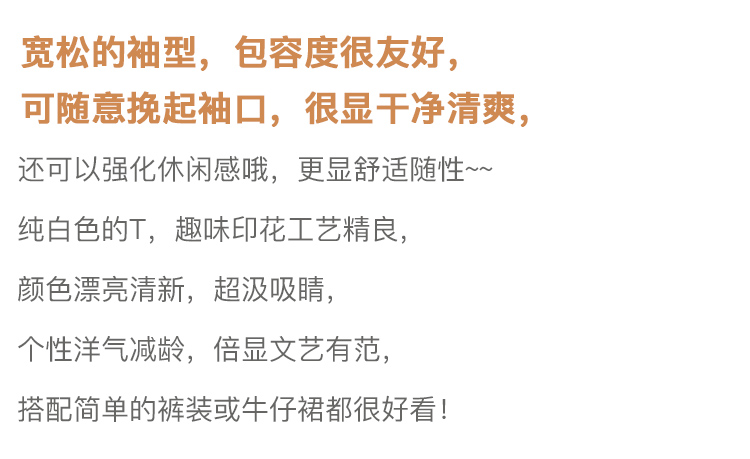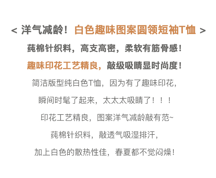 欧芮儿短袖白色T恤女2021春夏新款趣味图案洋气减龄时尚简洁上衣