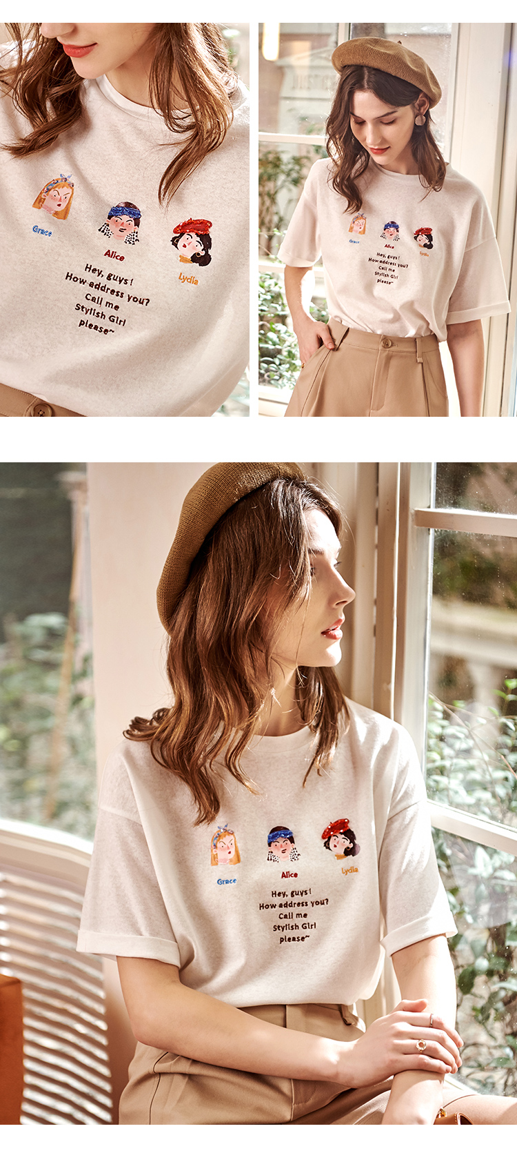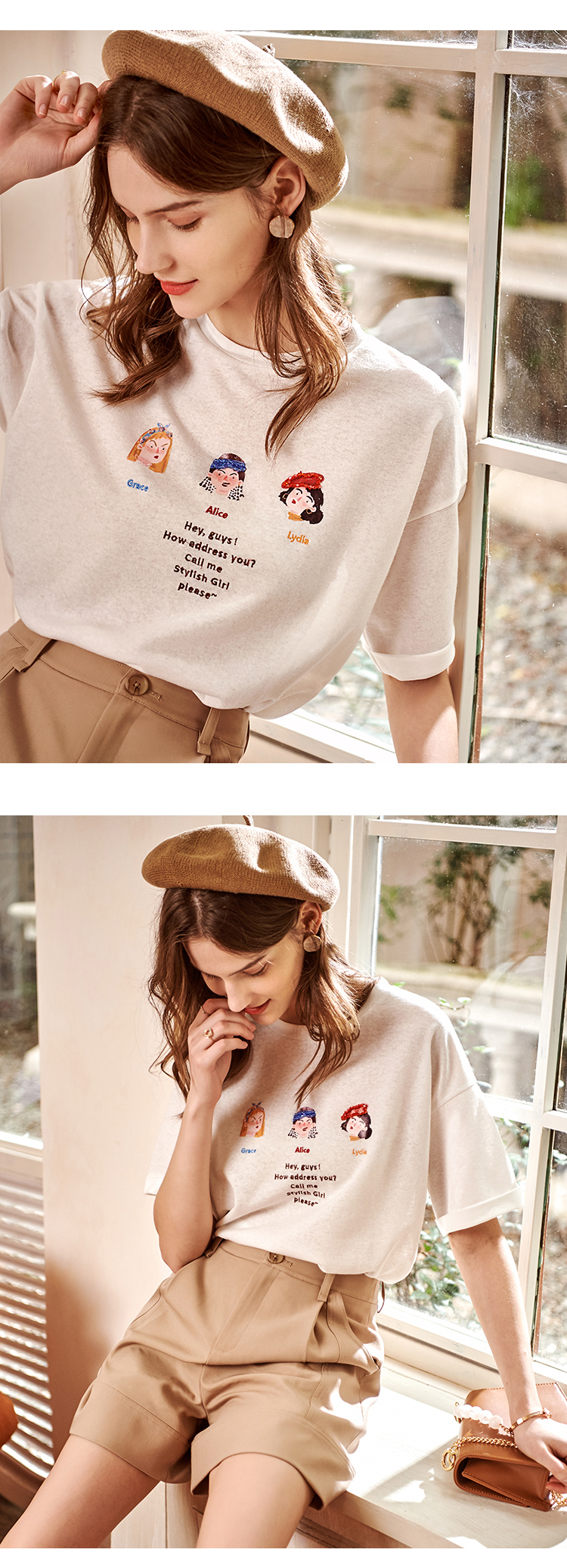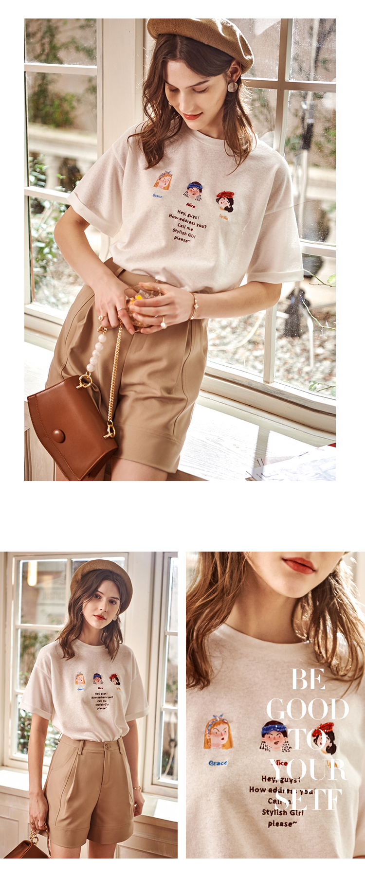 欧芮儿短袖白色T恤女2021春夏新款趣味图案洋气减龄时尚简洁上衣