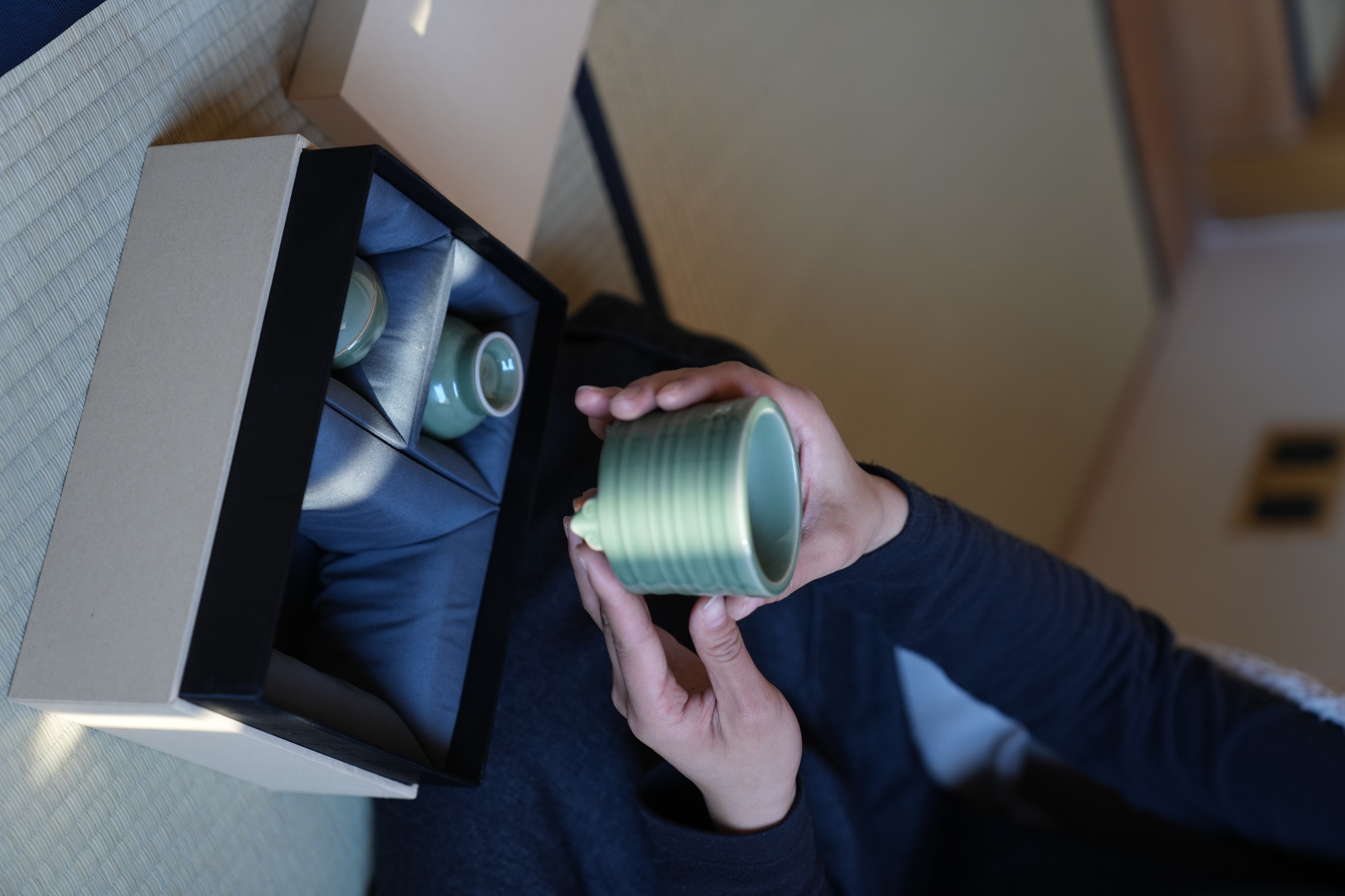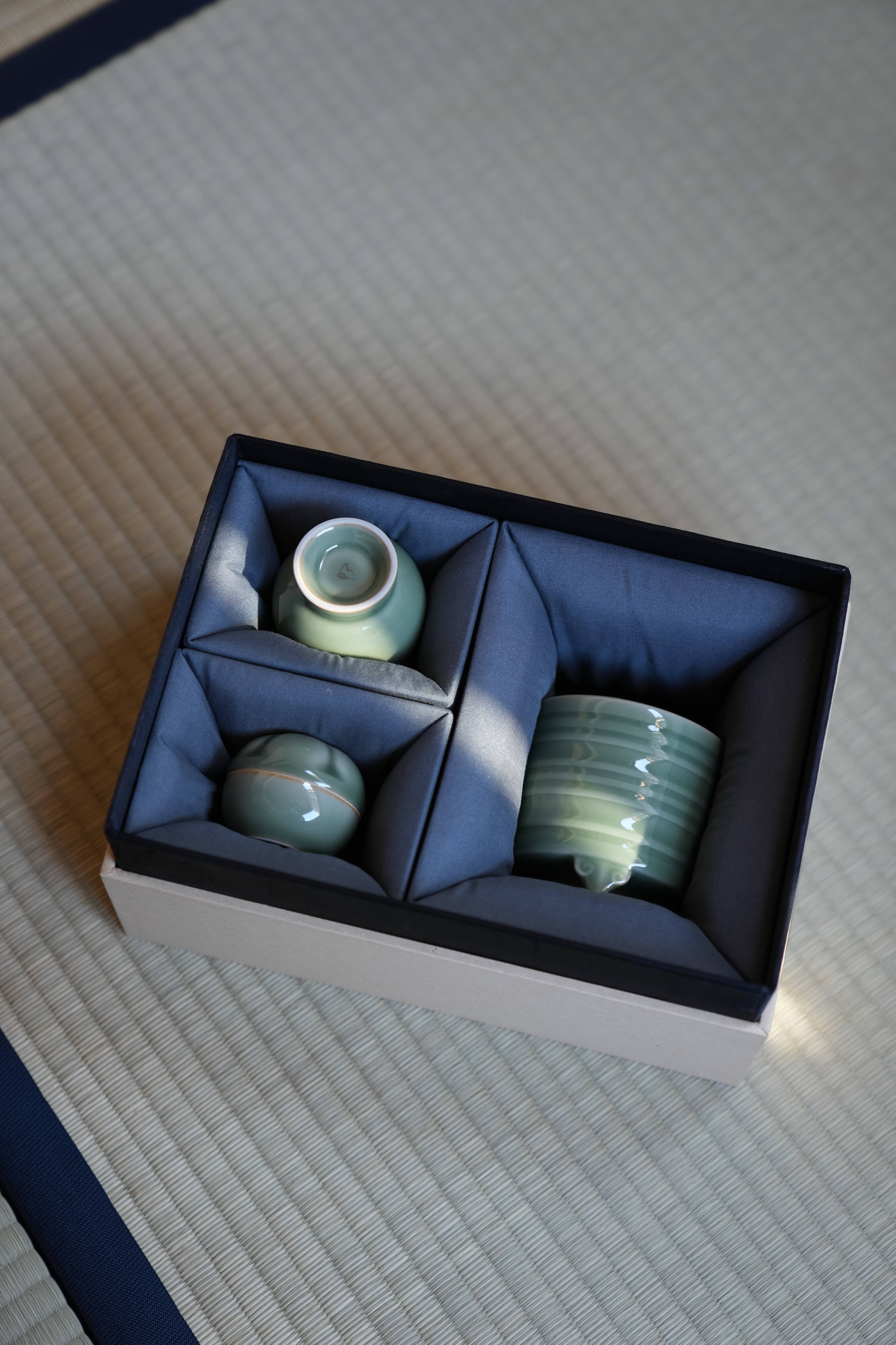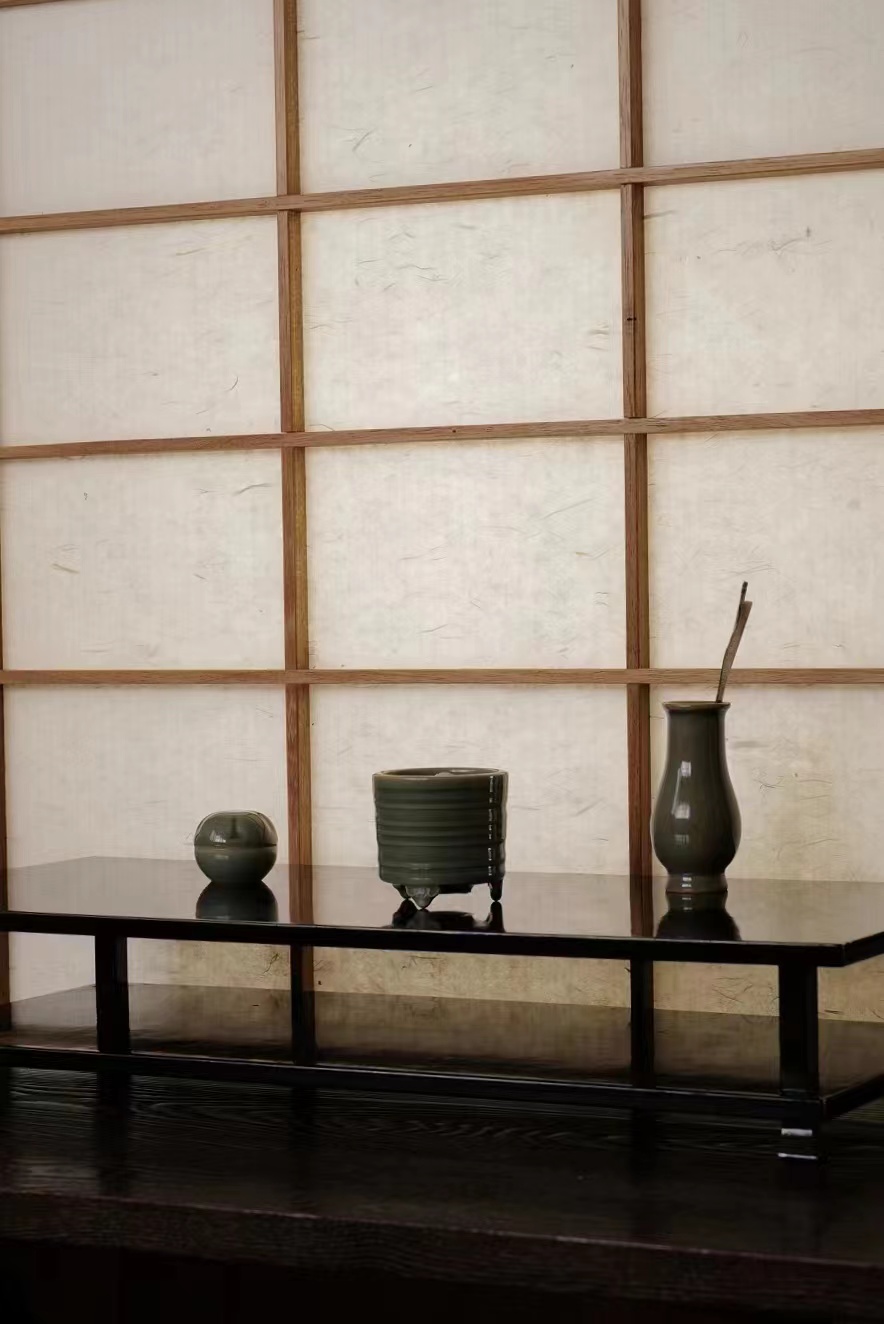 手工龙泉窑 炉瓶三事 (梅子青奁炉 梅子青梅花香盒 梅子清香箸瓶)