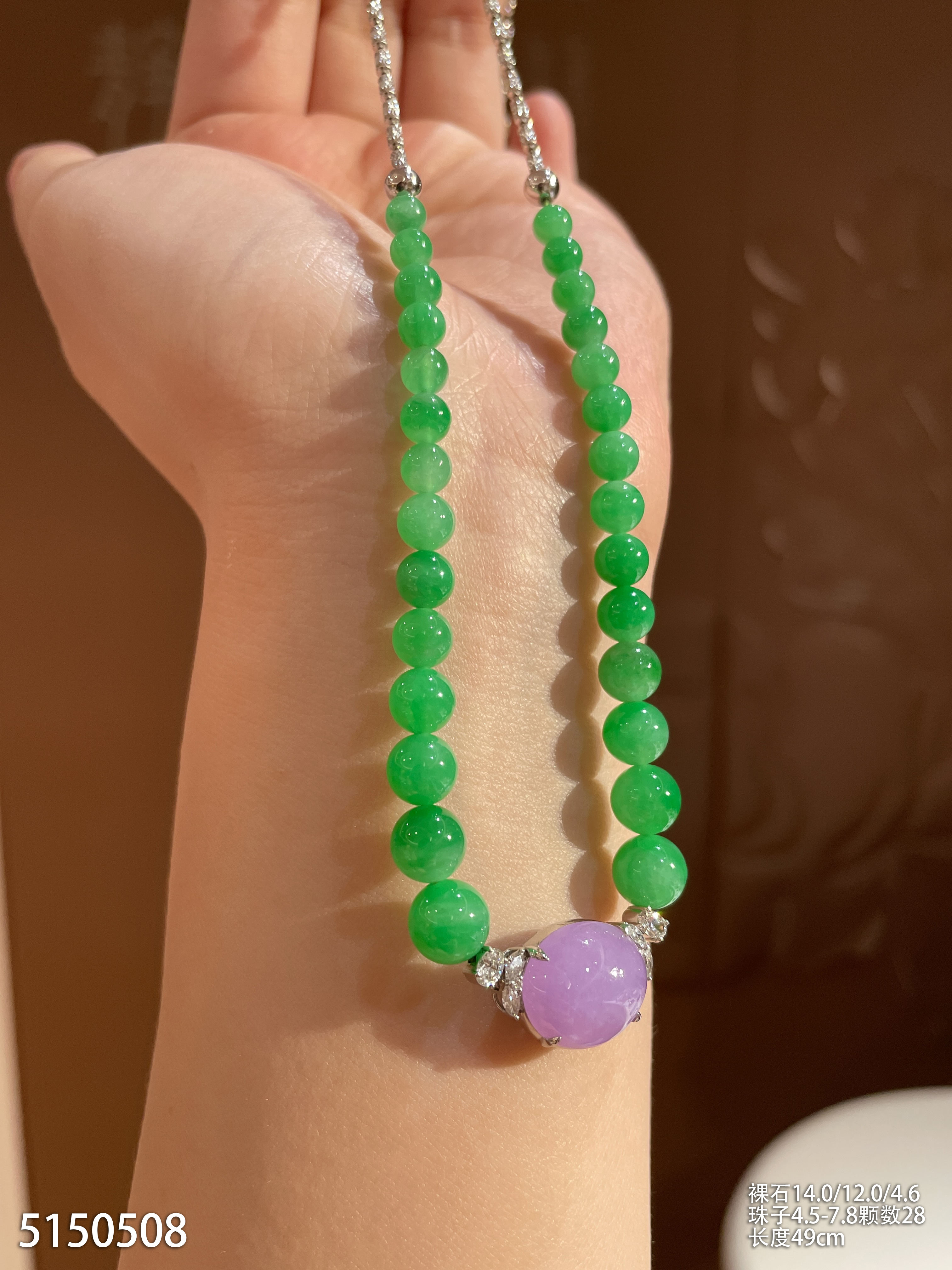 艳绿珠子套链【5150508】具体价格微信咨询