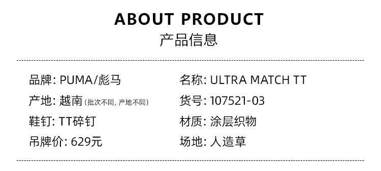 SFS 彪马Puma ULTRA MATCH 中端TF碎钉足球鞋男 107521-03