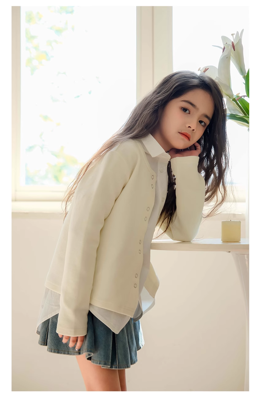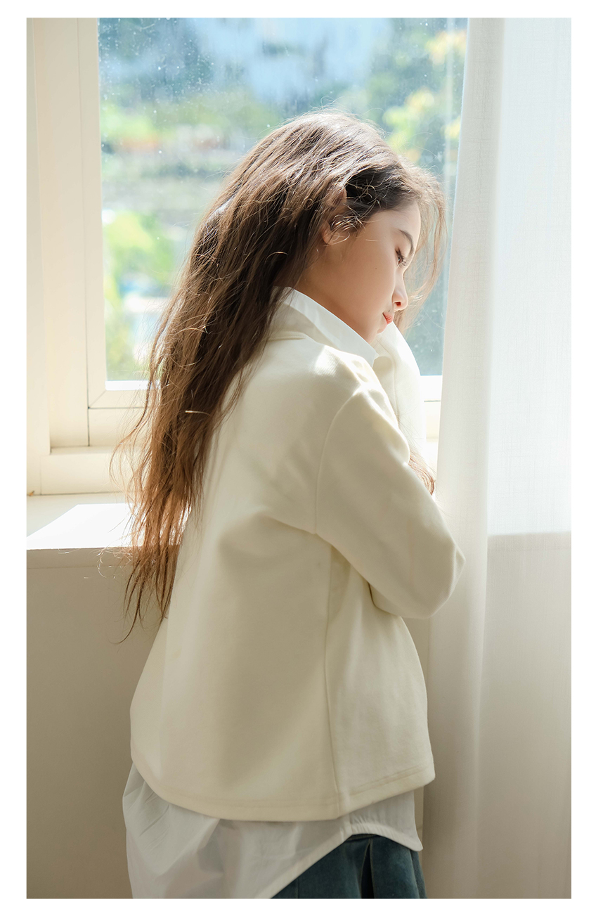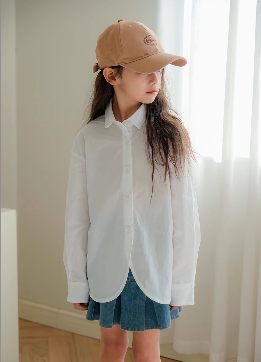 littletime女童纯棉长袖白色衬衫2024春秋新款韩版百搭小翻领衬衣