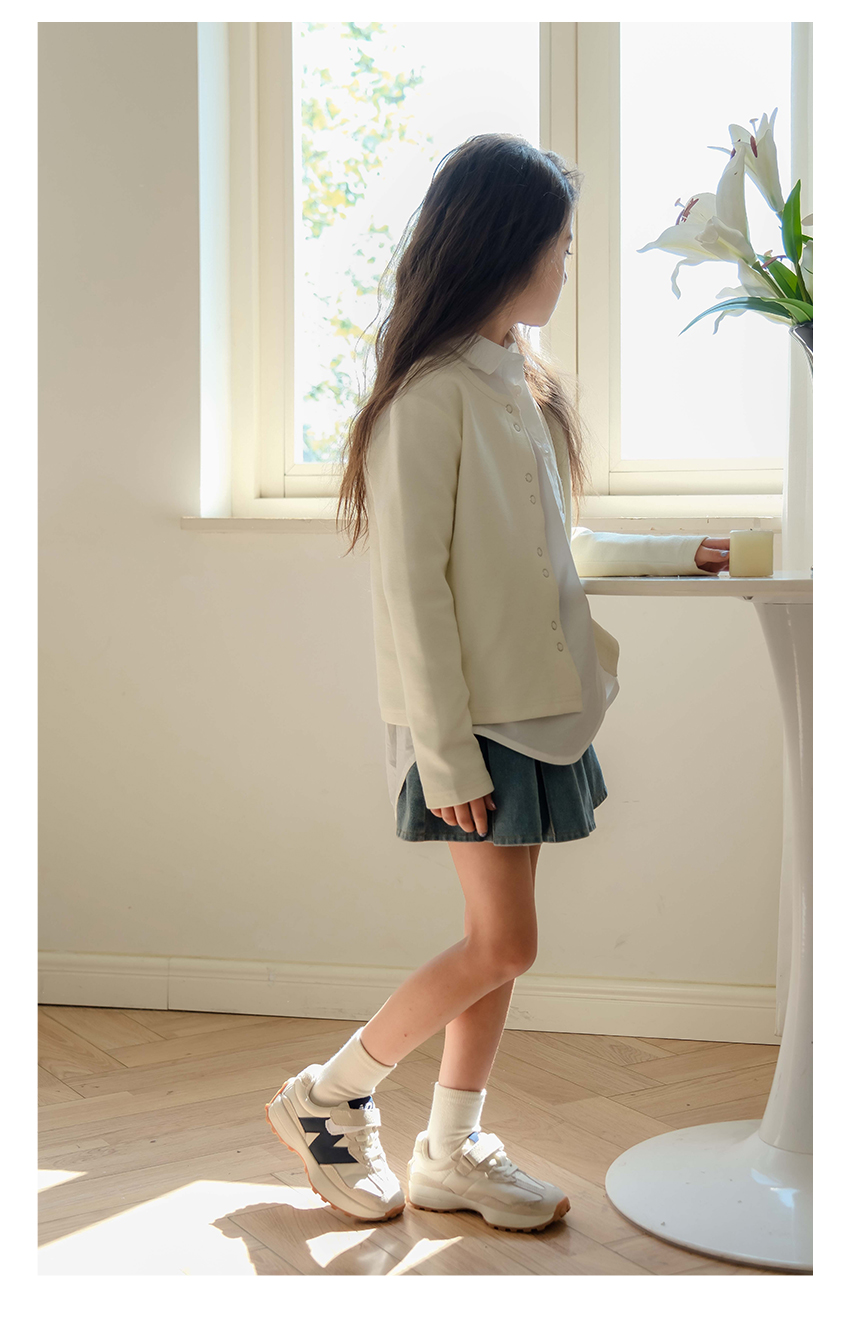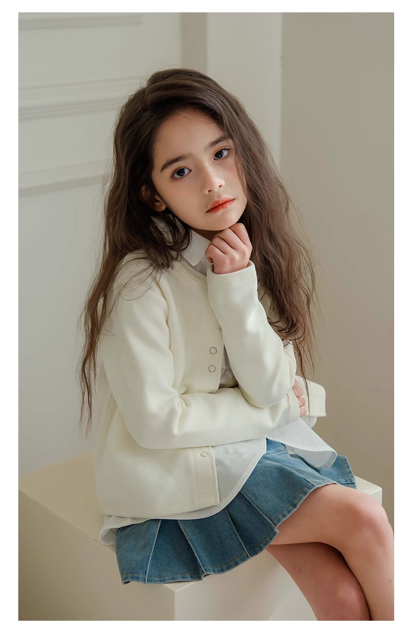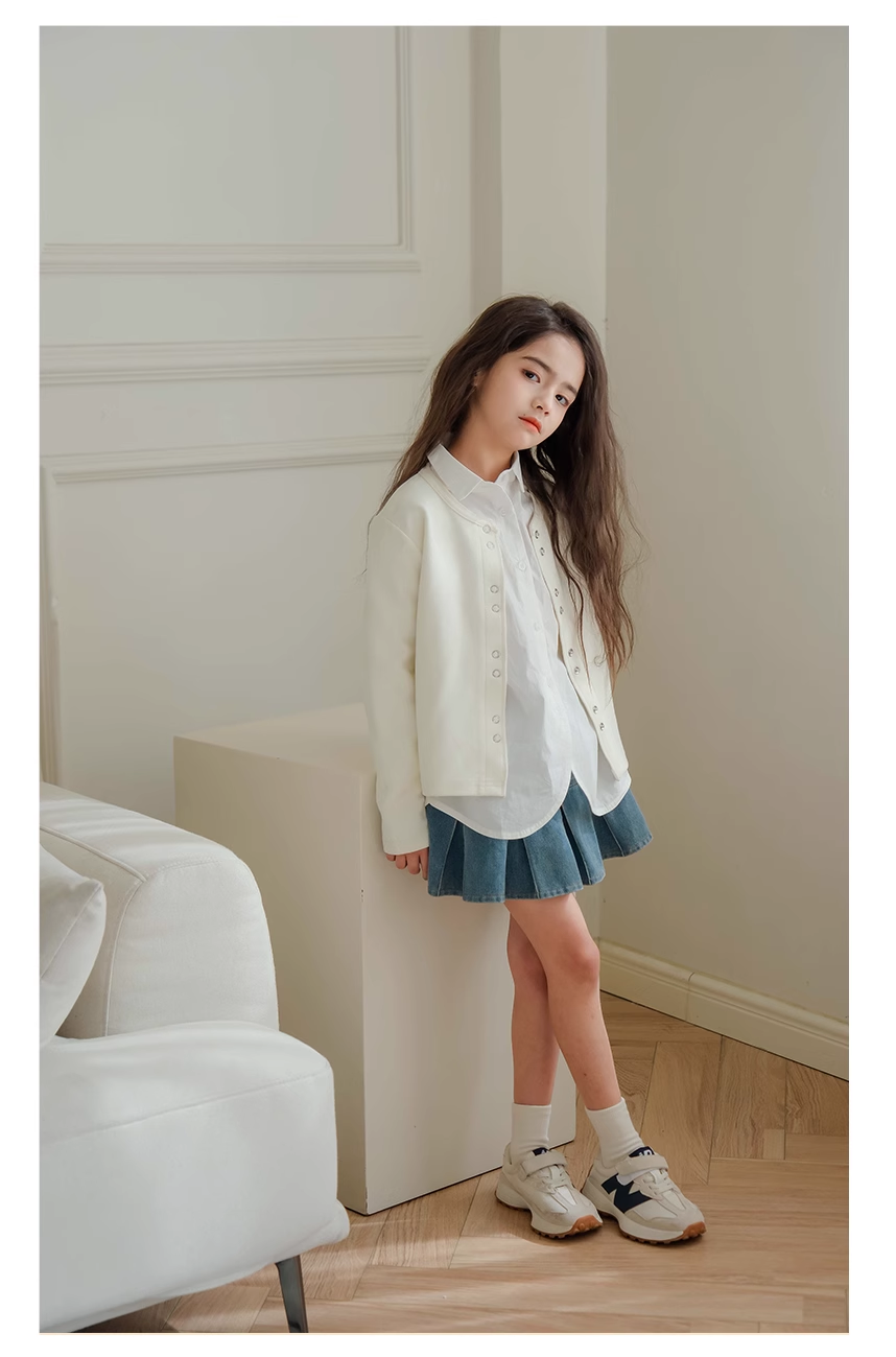 littletime女童纯棉长袖白色衬衫2024春秋新款韩版百搭小翻领衬衣