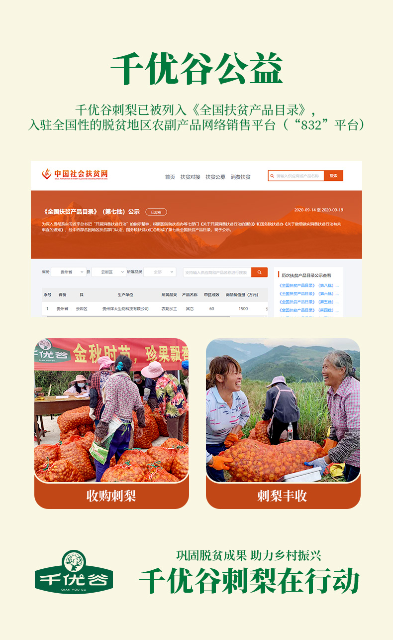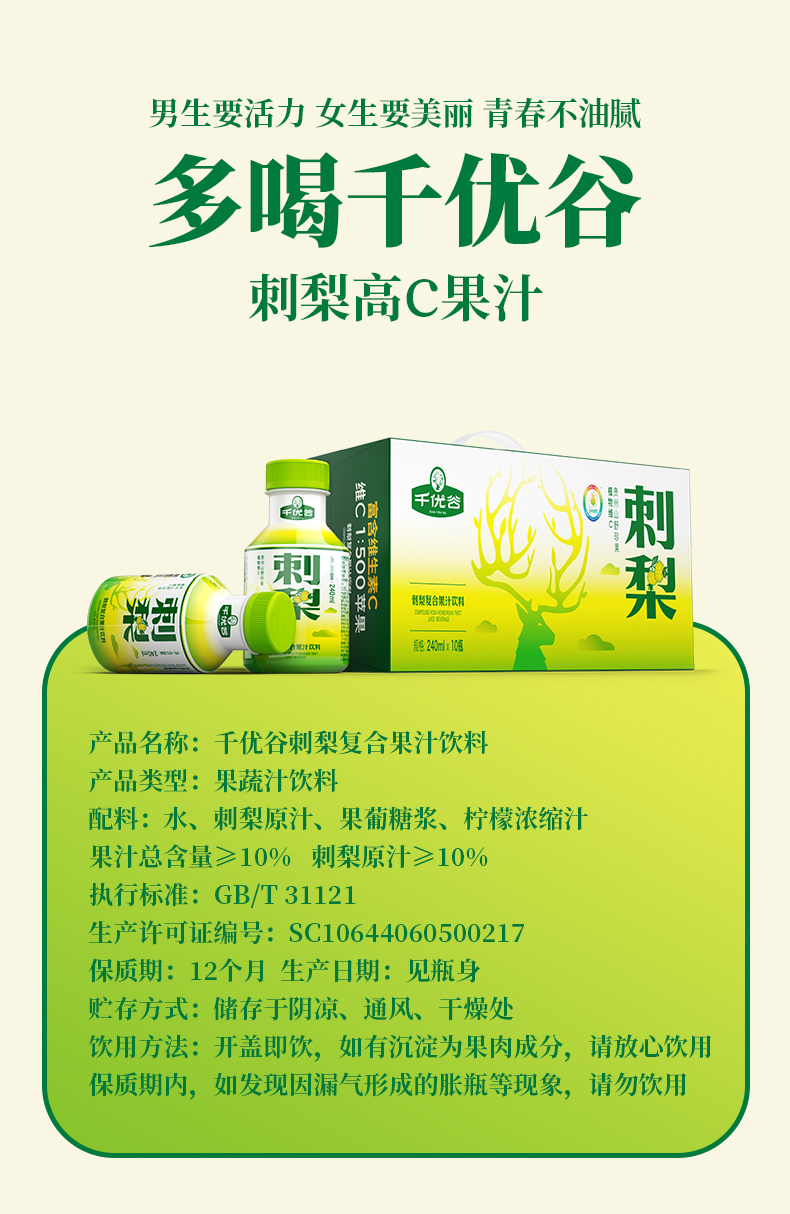 贵州 千优谷 刺梨复合果汁饮料 240ML*10瓶/箱