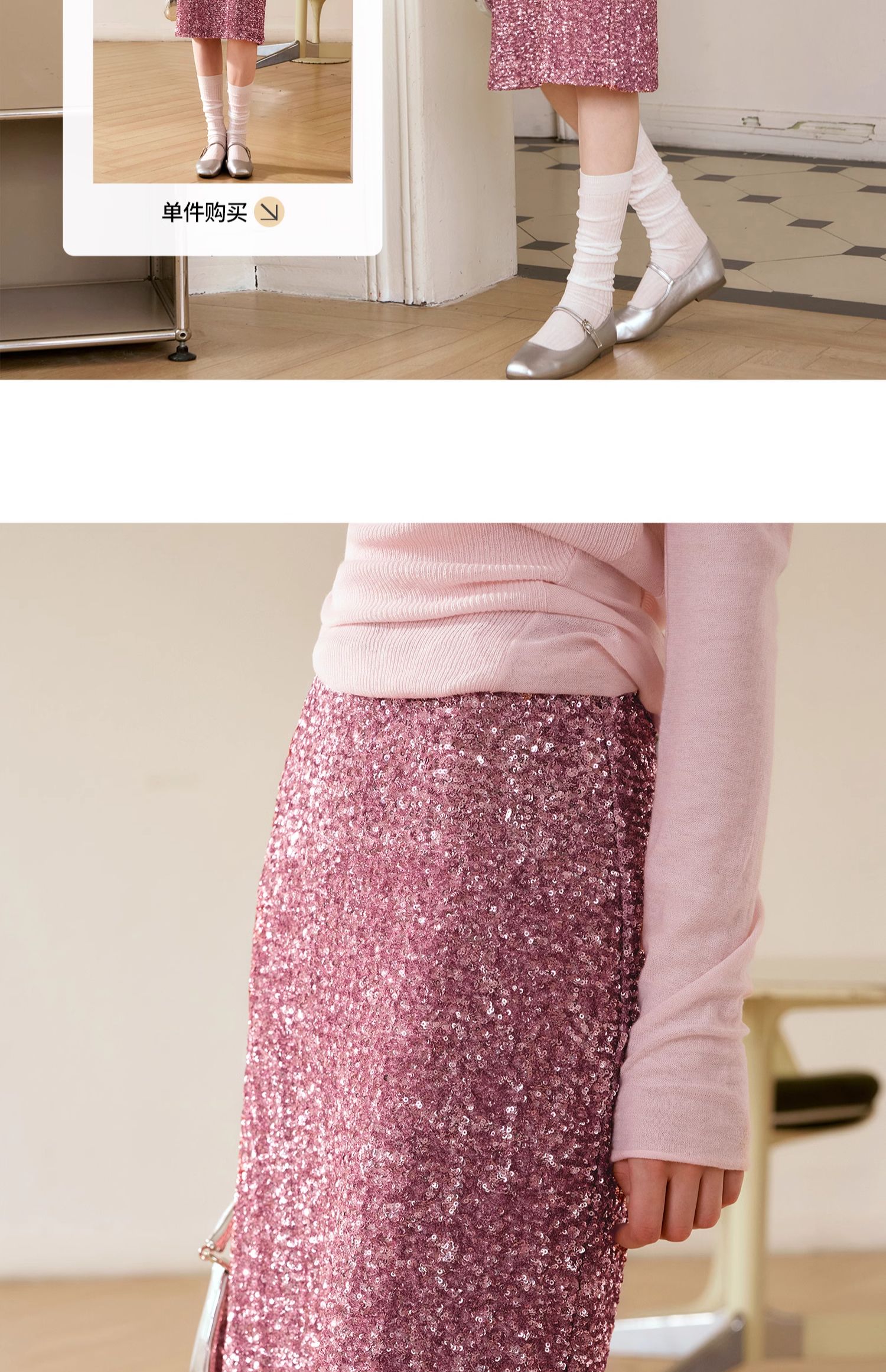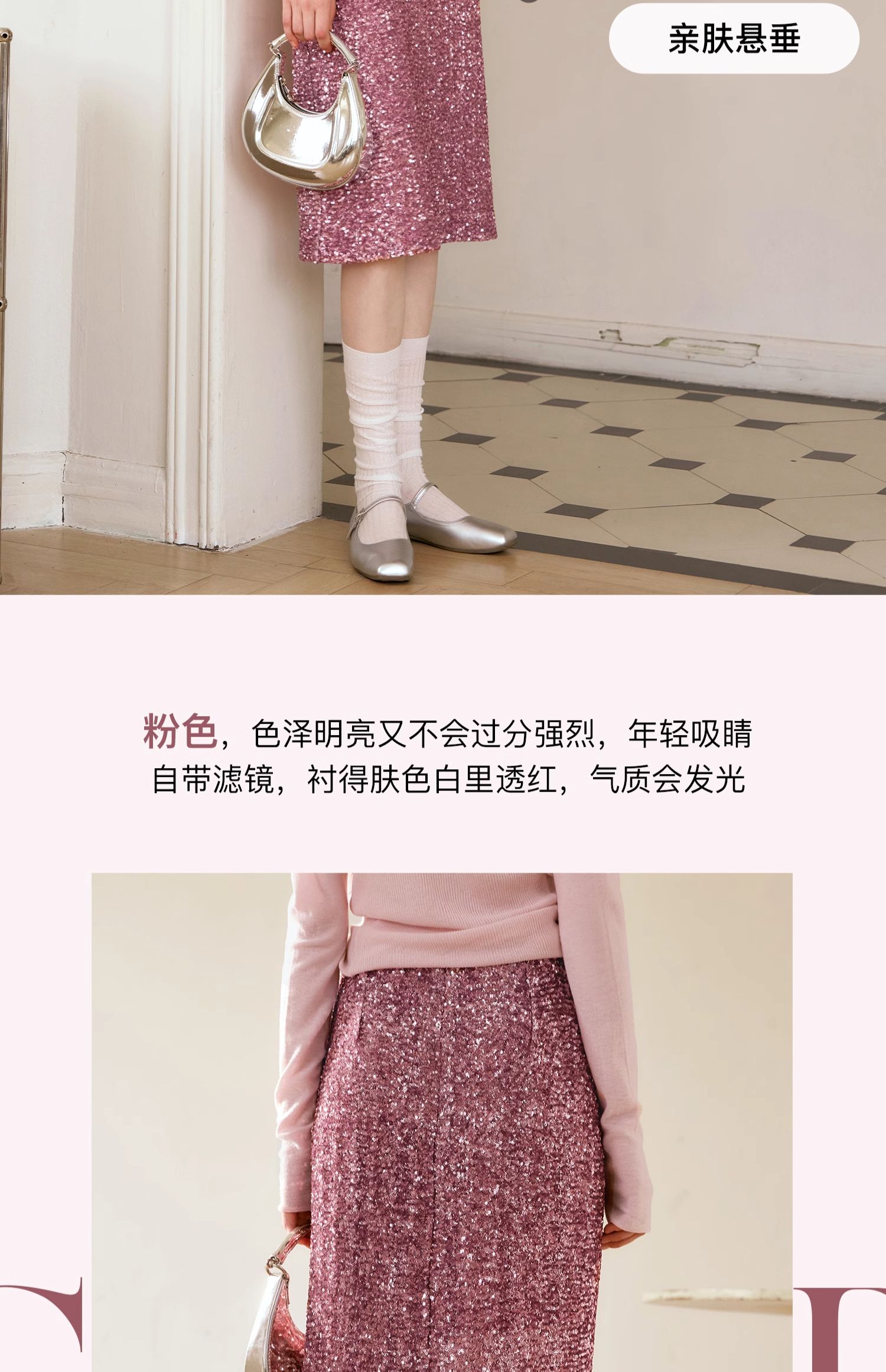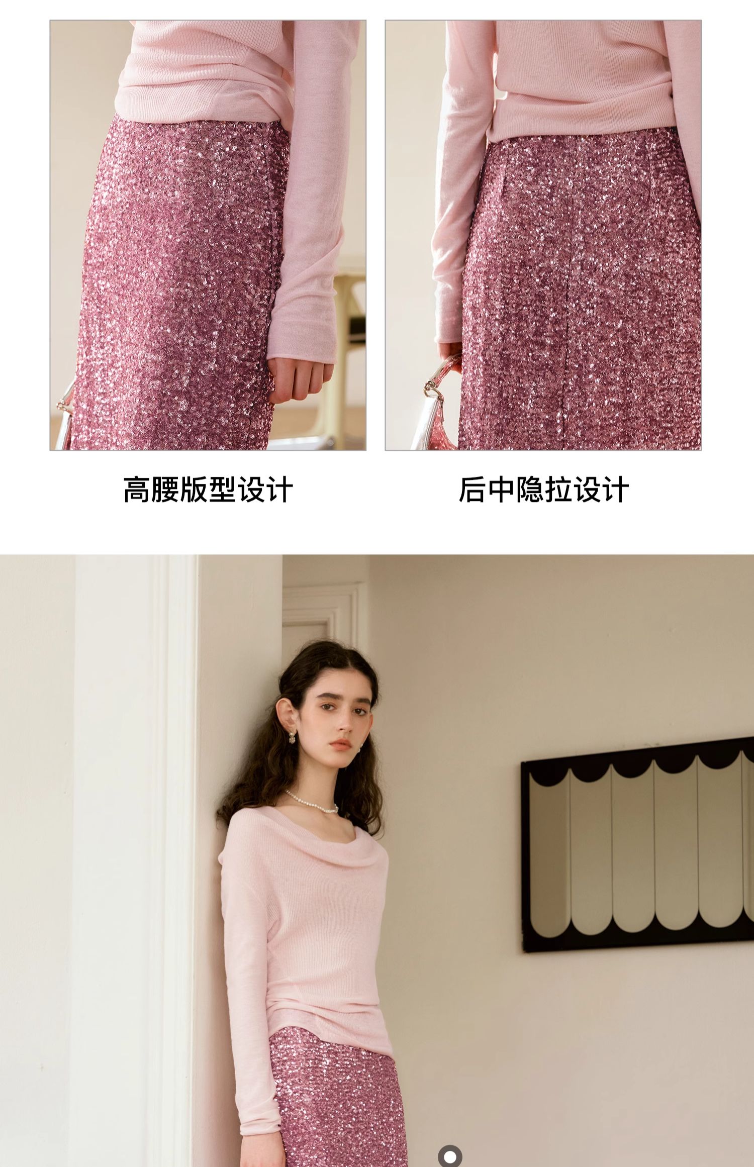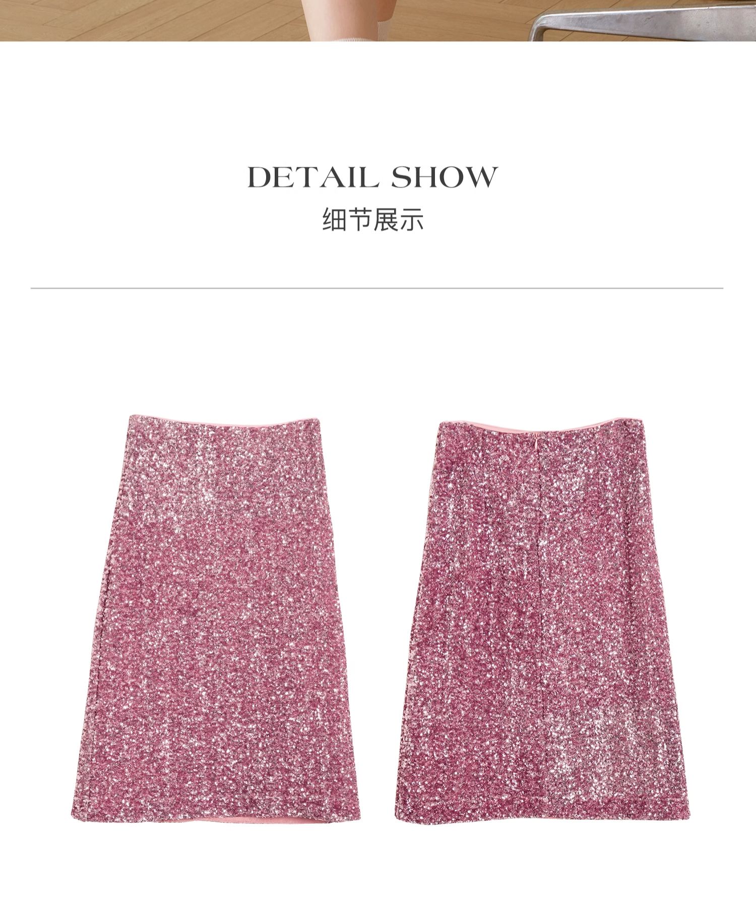 OLrain欧芮儿粉色半身裙女秋季2024年新款时尚流光珠片中长款半裙