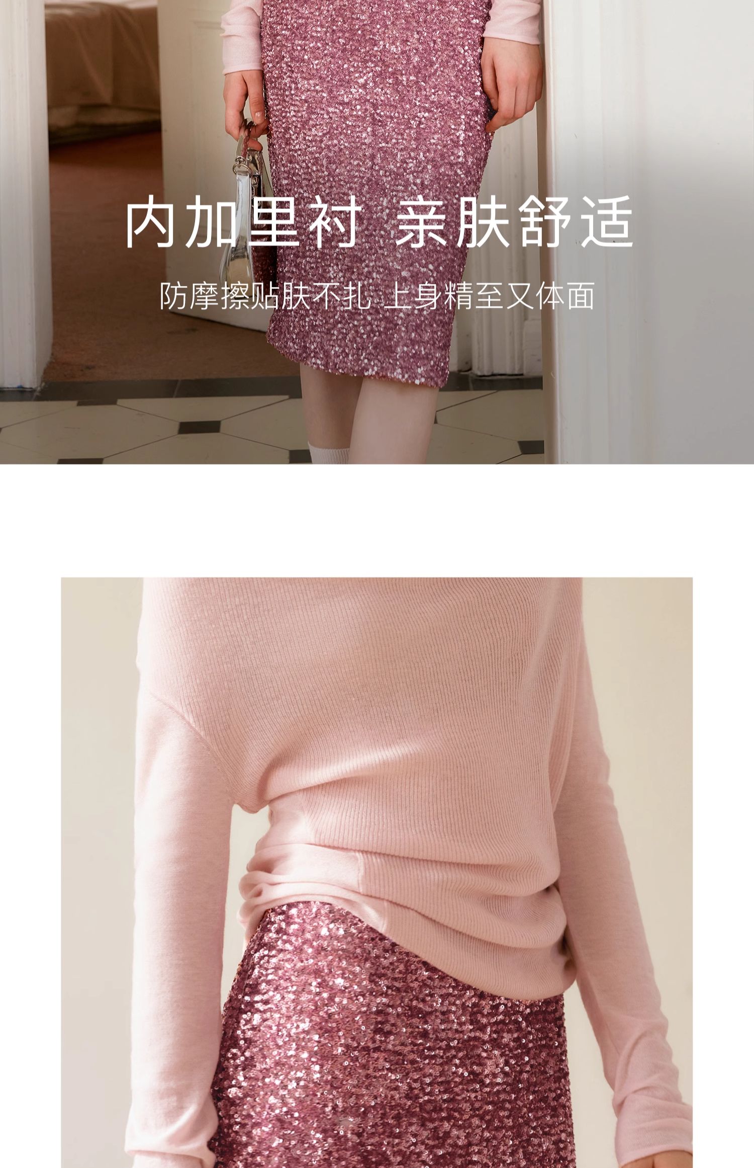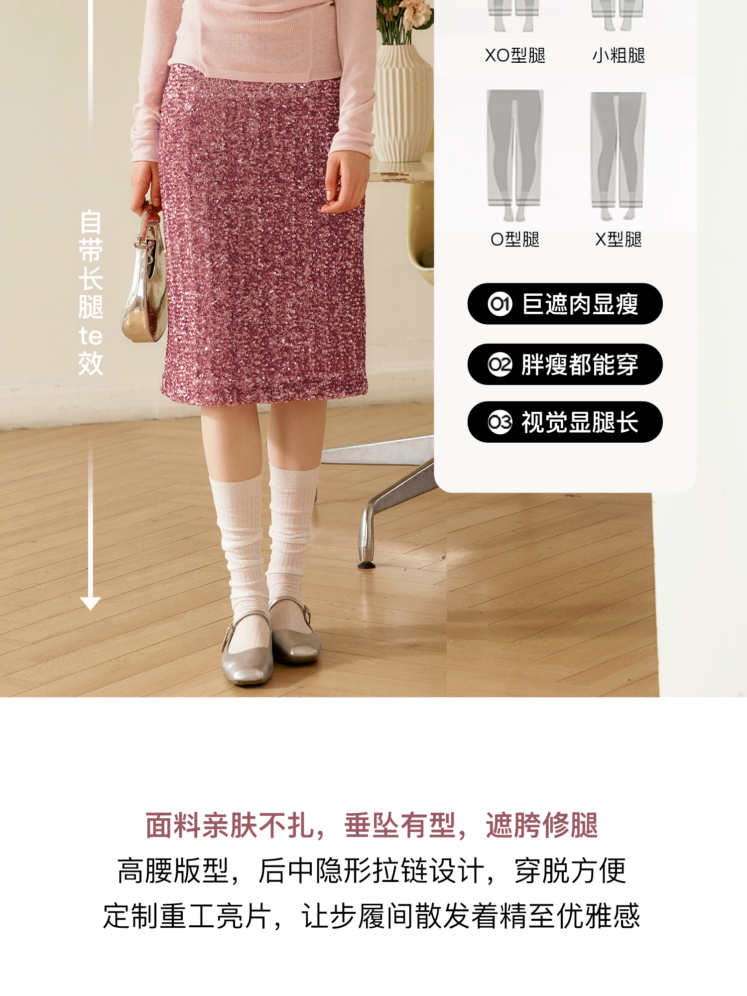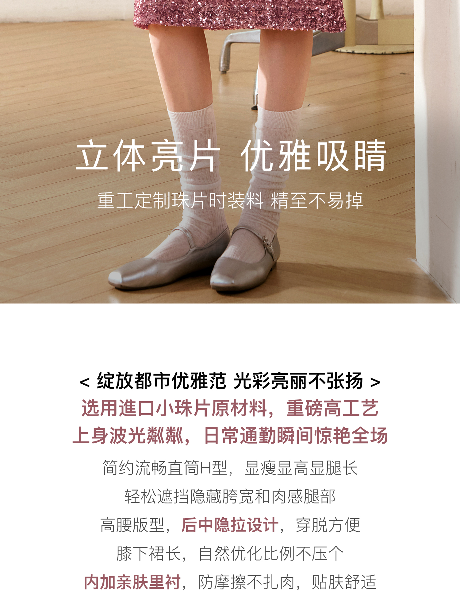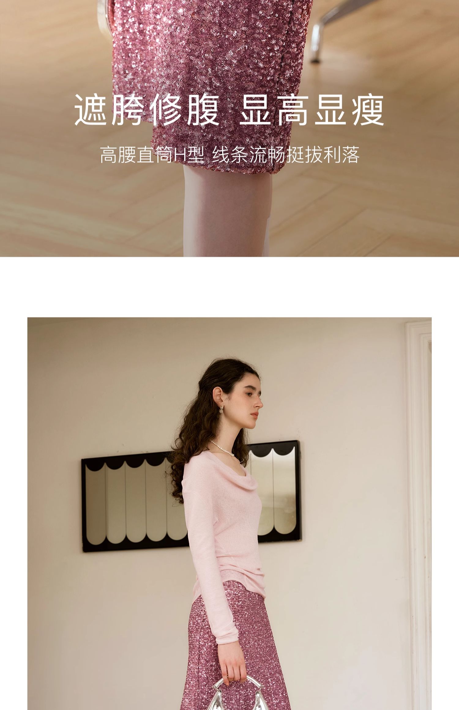 OLrain欧芮儿粉色半身裙女秋季2024年新款时尚流光珠片中长款半裙
