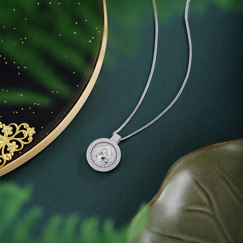 【寓意】:以纯银精铸弥勒佛相,清雅温润,笑口常开,象征得智慧之光、平安之佑,在岁月流转中收获福运安康,笑纳人间清欢。