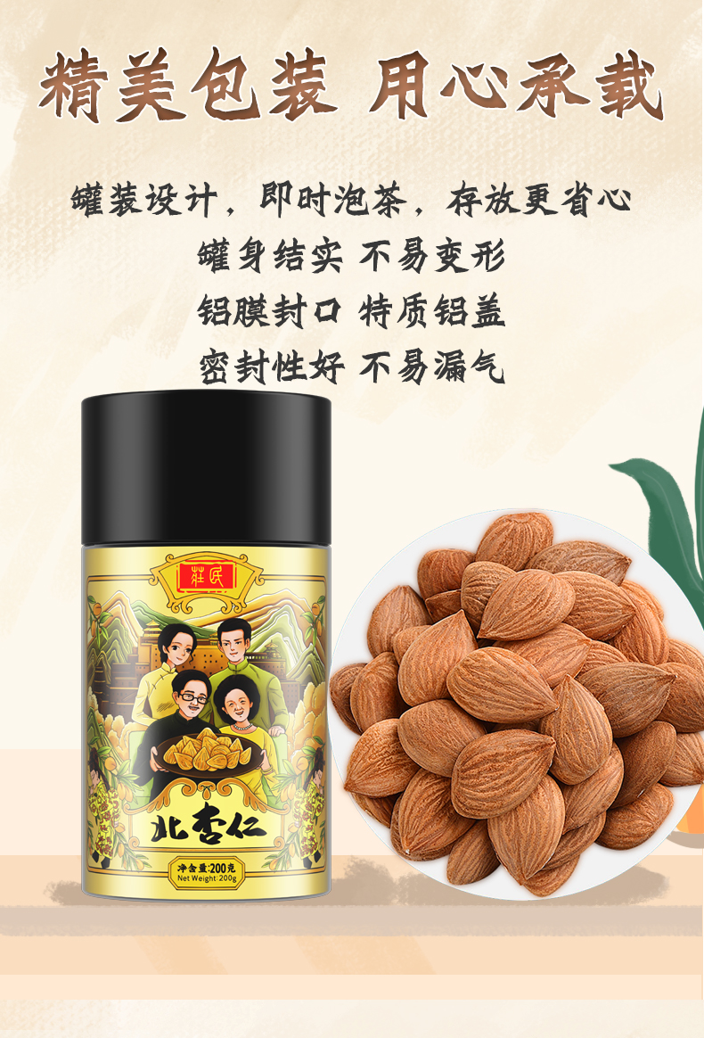 庄民 北杏仁 生苦杏仁片 大颗粒 粒粒精选无碎好货 饱满200g/罐