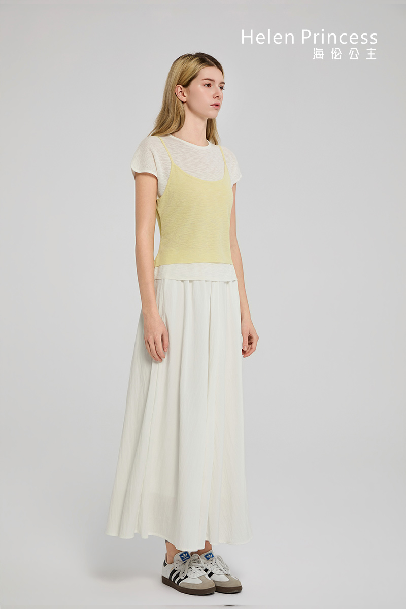 假两件叠穿设计,层次丰富,美观时尚。绑带收腰设计个性别致,增加了多种穿搭风格。面料亲肤透气,配色简洁清新,轻松满足日常搭配需求。