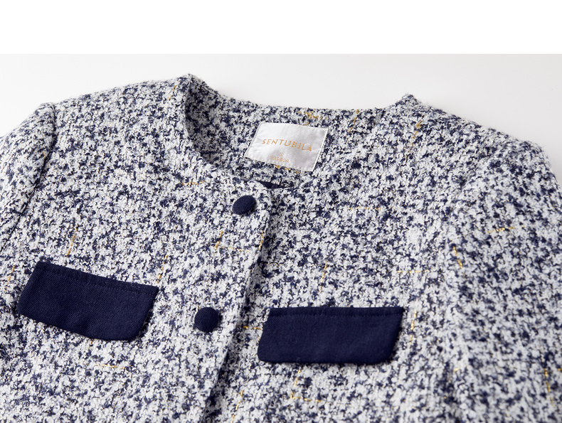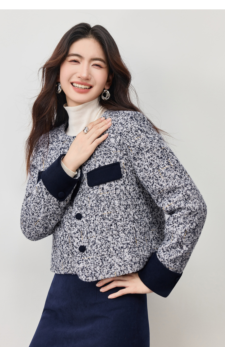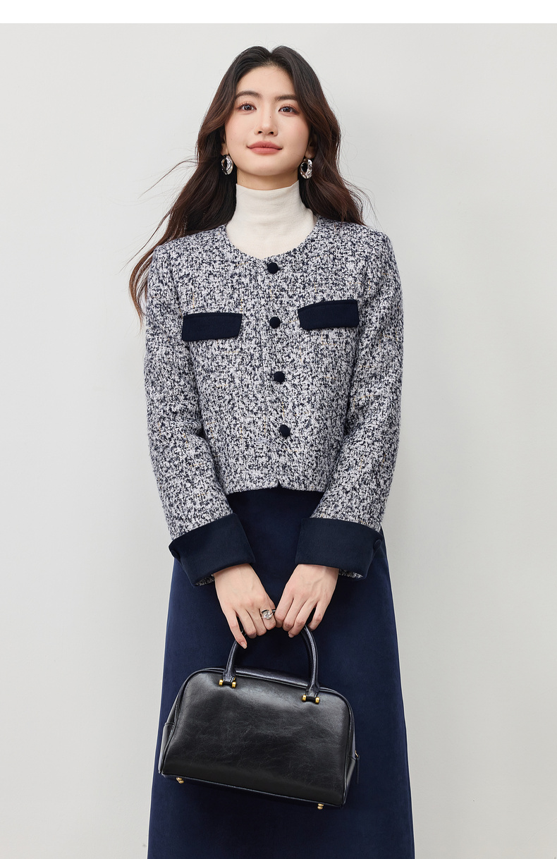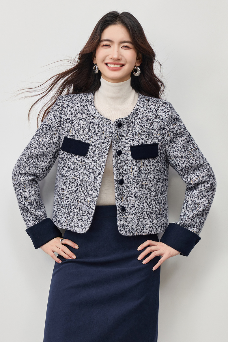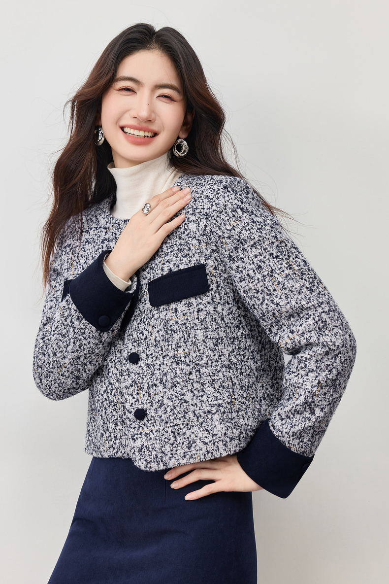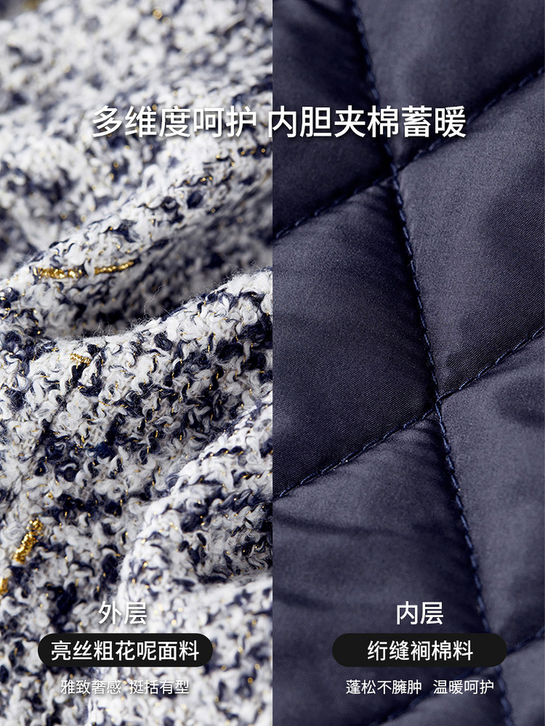 【内购】【免搭配套装】通勤圆领垫肩短款夹棉保暖外套&磨毛开叉A字半身裙-154ZA3552