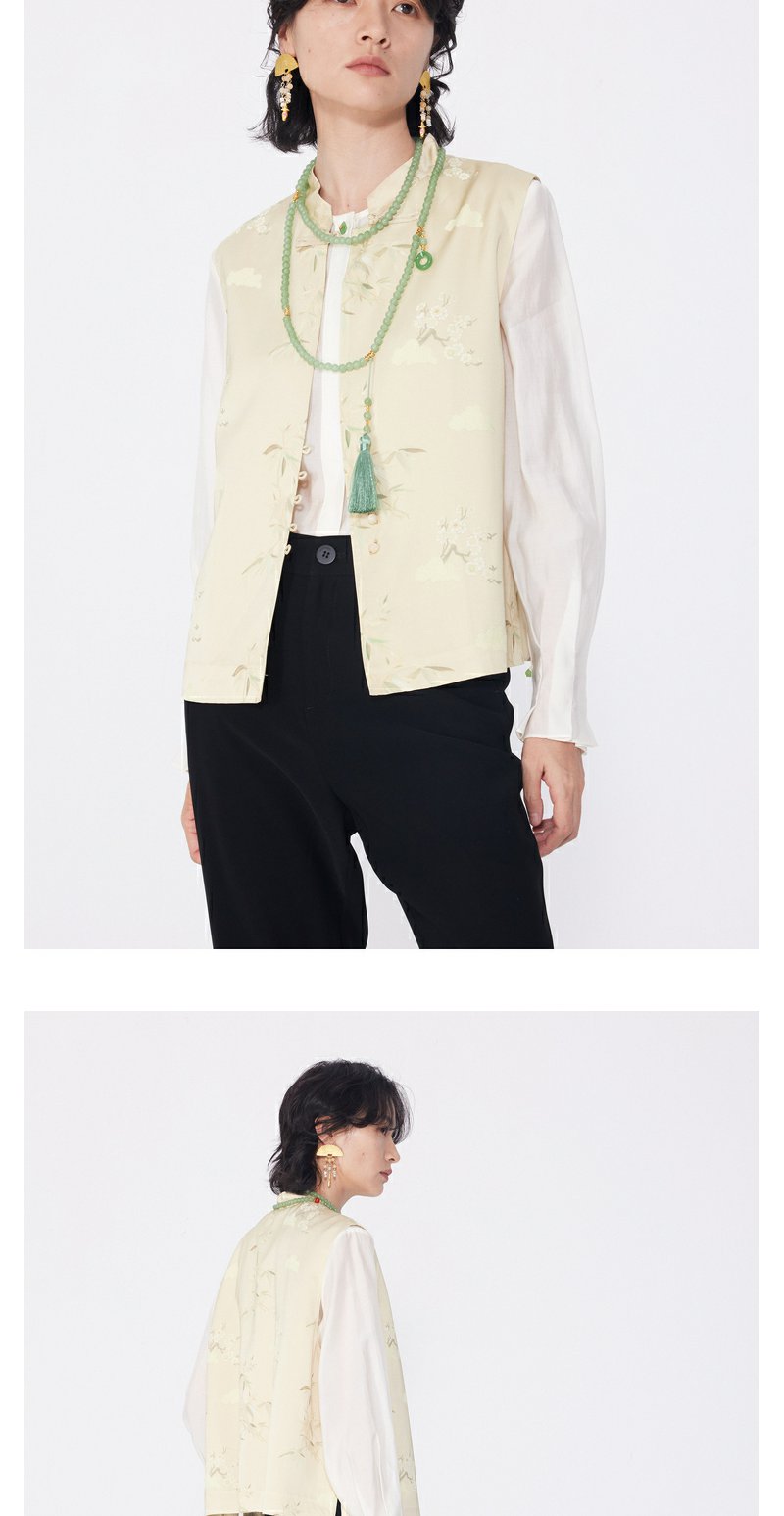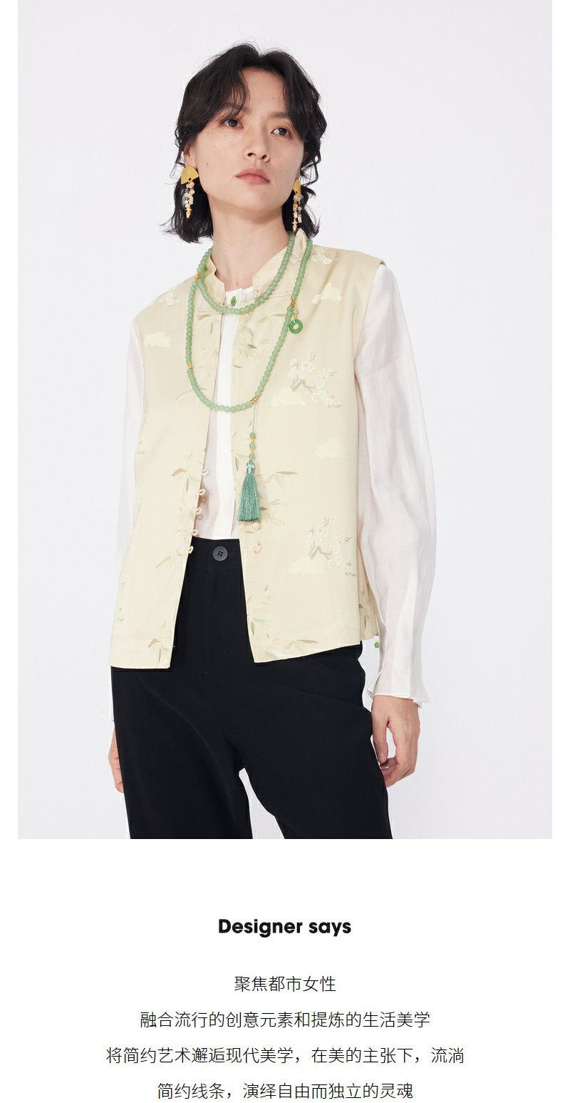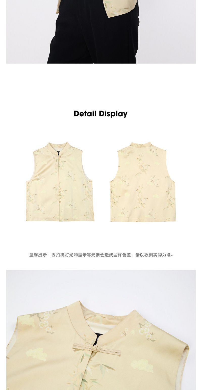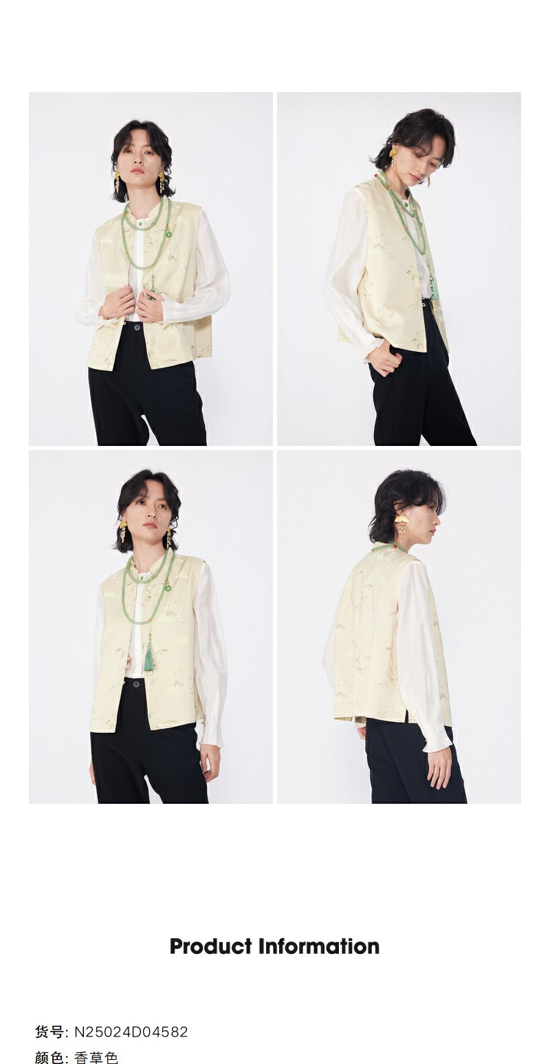 NEELLY纳俪商场同款春季新款新中式无袖马甲女小立领竹子印花上衣N25024D04582