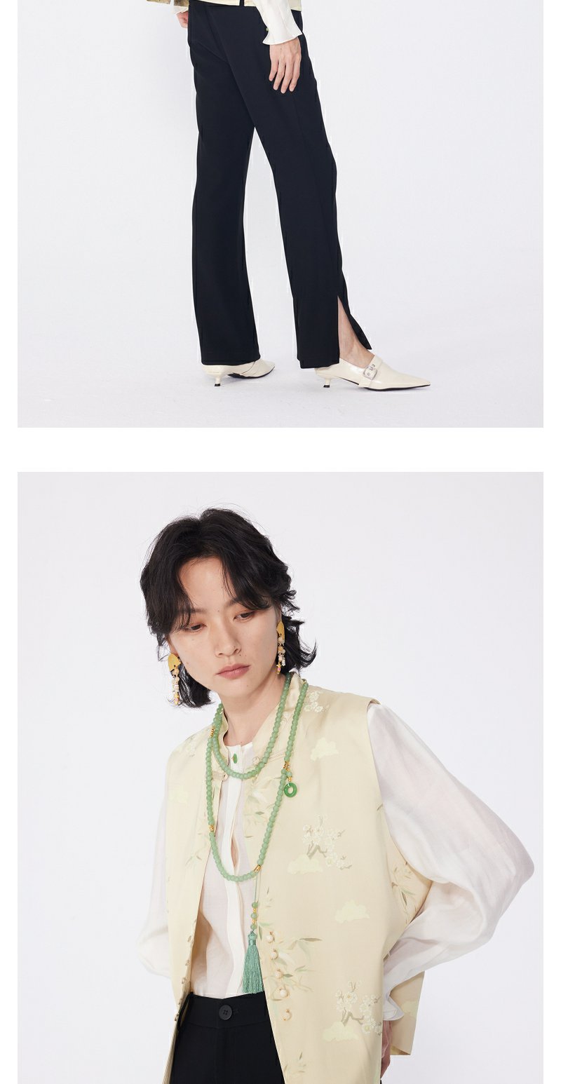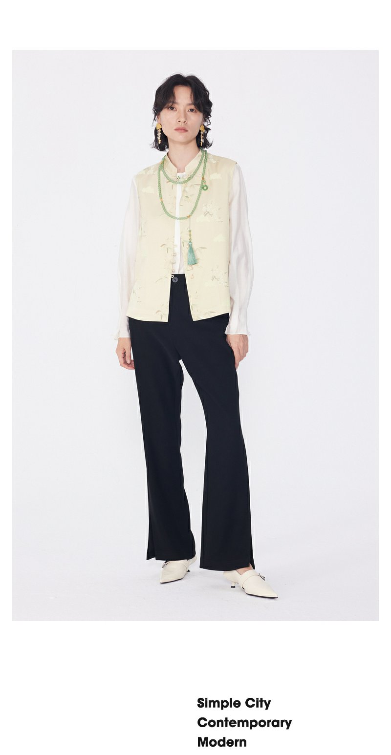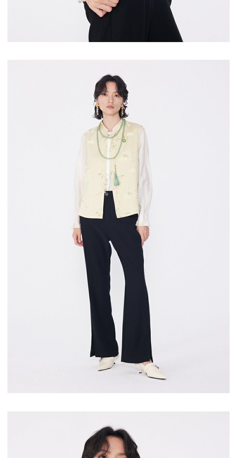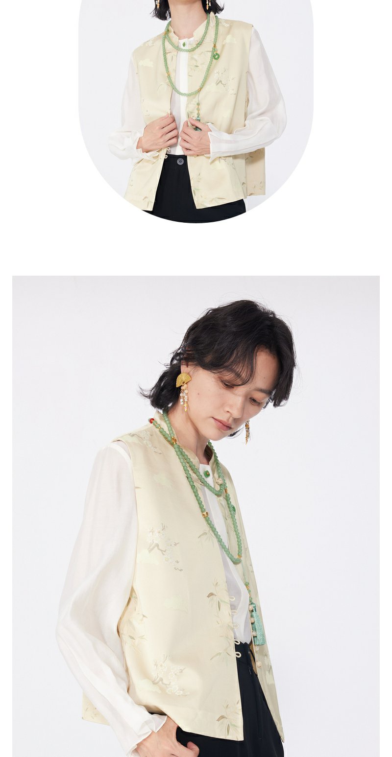 NEELLY纳俪商场同款春季新款新中式无袖马甲女小立领竹子印花上衣N25024D04582