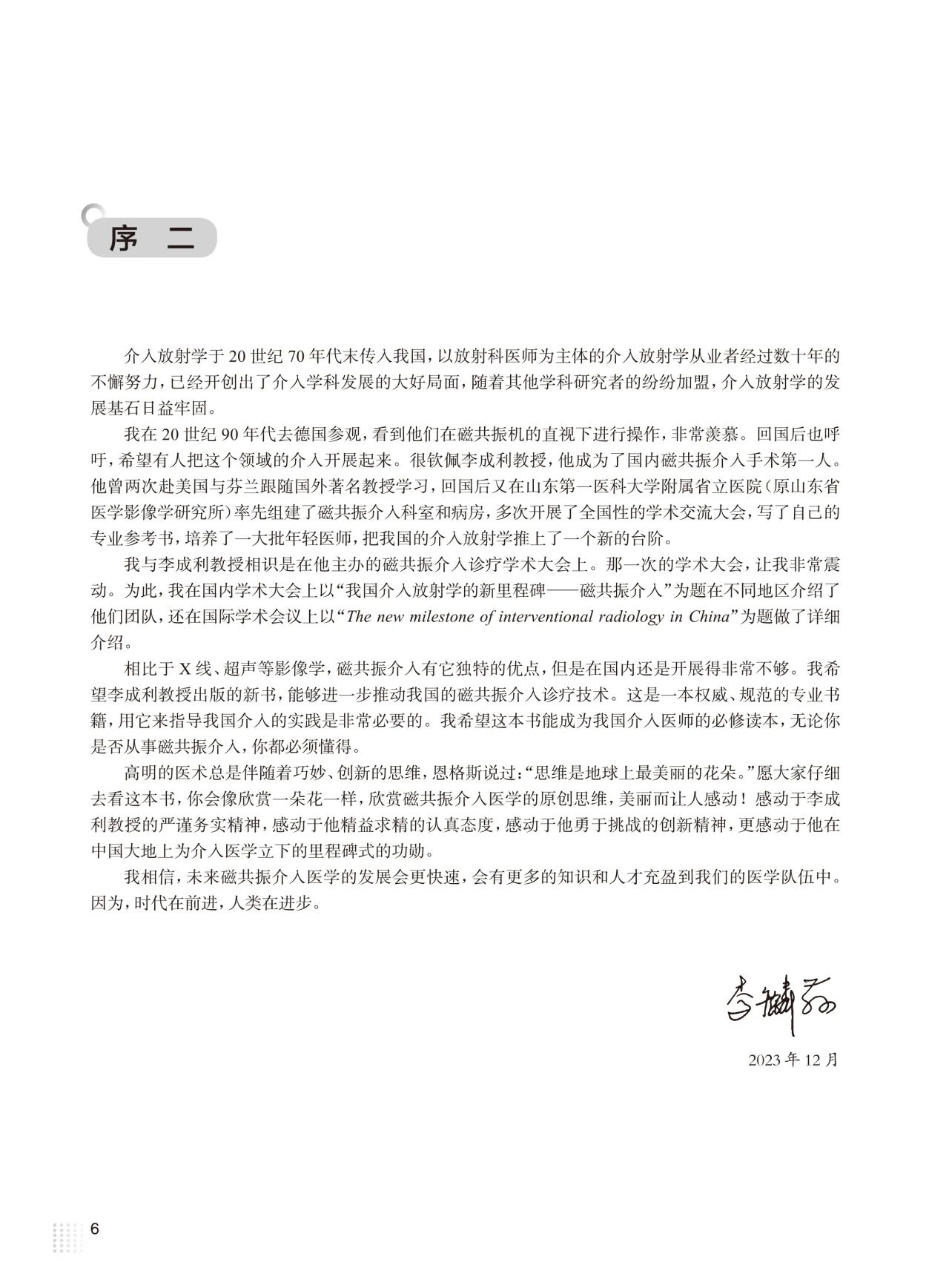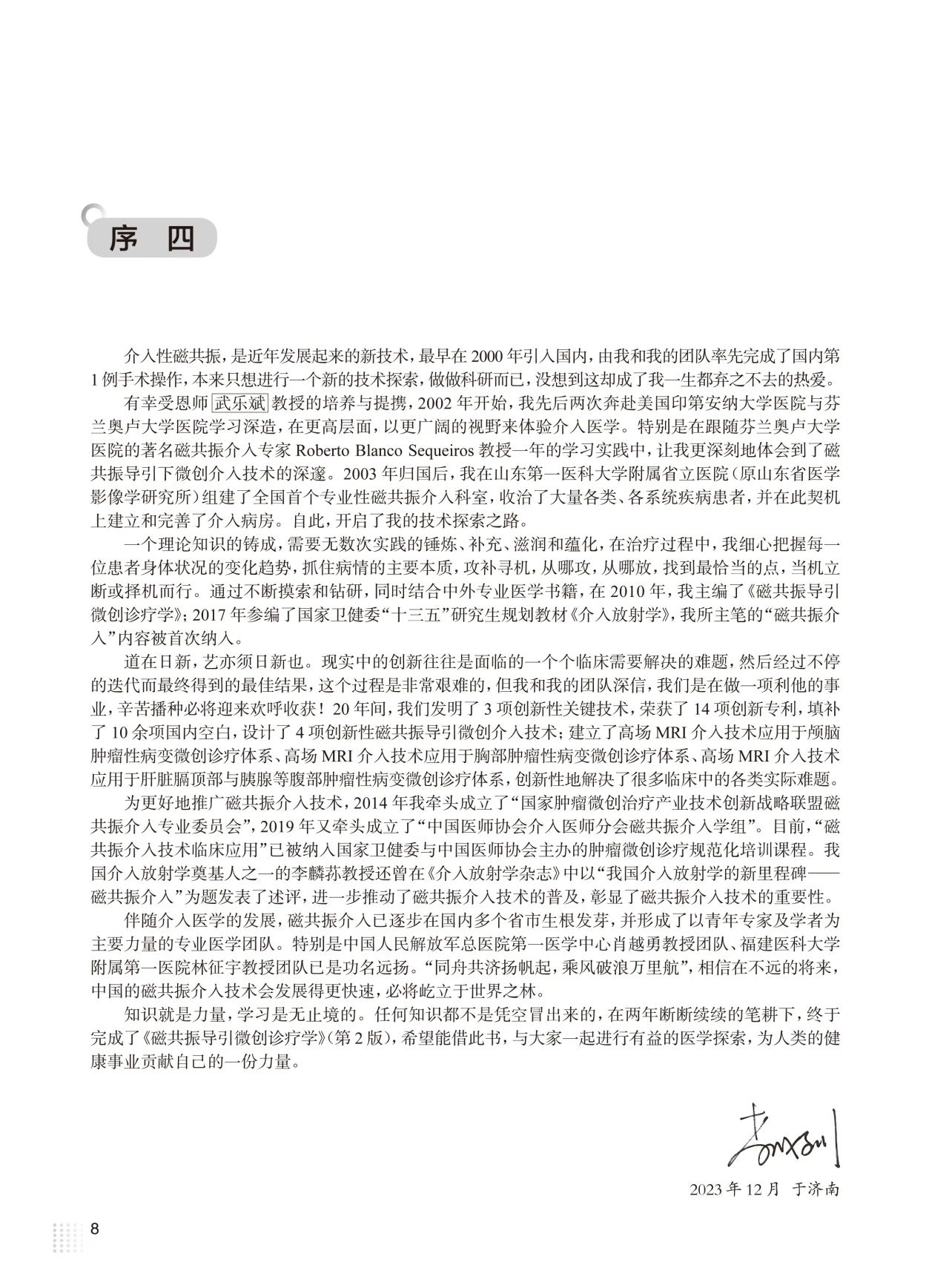 李教授在国内外期刊发表论文100余篇,2010年主编国内第一部磁共振介入论著《磁共振导引微创诊疗学》,填补国内空白。2012年起草编写国家卫计委“磁共振引导下介入操作规范”;2017年编写全国医学研究生教材《放射介入学》首次将磁共振介入技术纳入教学大纲内容;2018年组织国内相关专家讨论并制定《磁共振引导颅脑病变穿刺活检专家共识2018版》、《磁共振引导下经皮肺穿刺活检术操作规范中国专家共识》和《影像引导肝癌的冷冻消融治疗专家共识2020 版》。