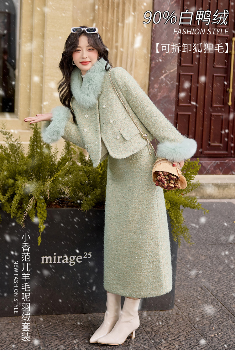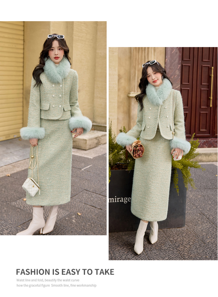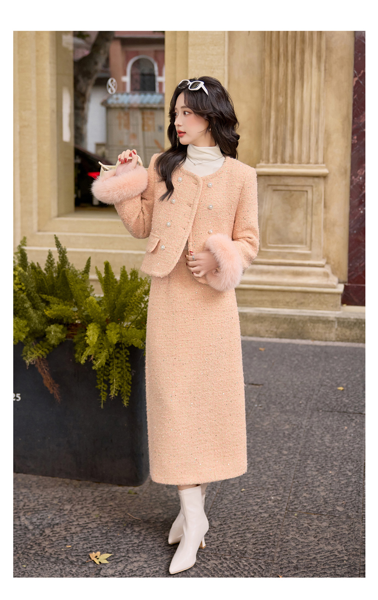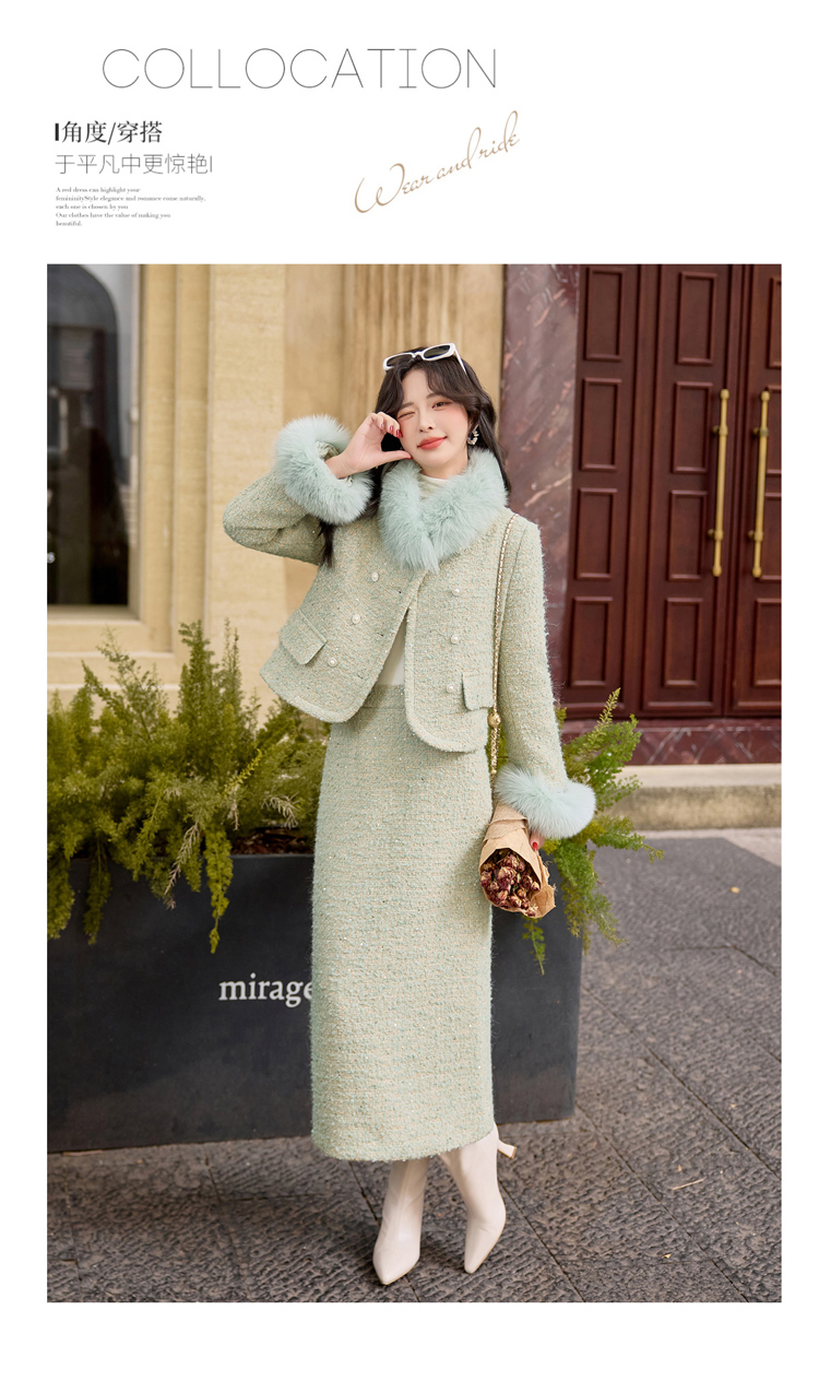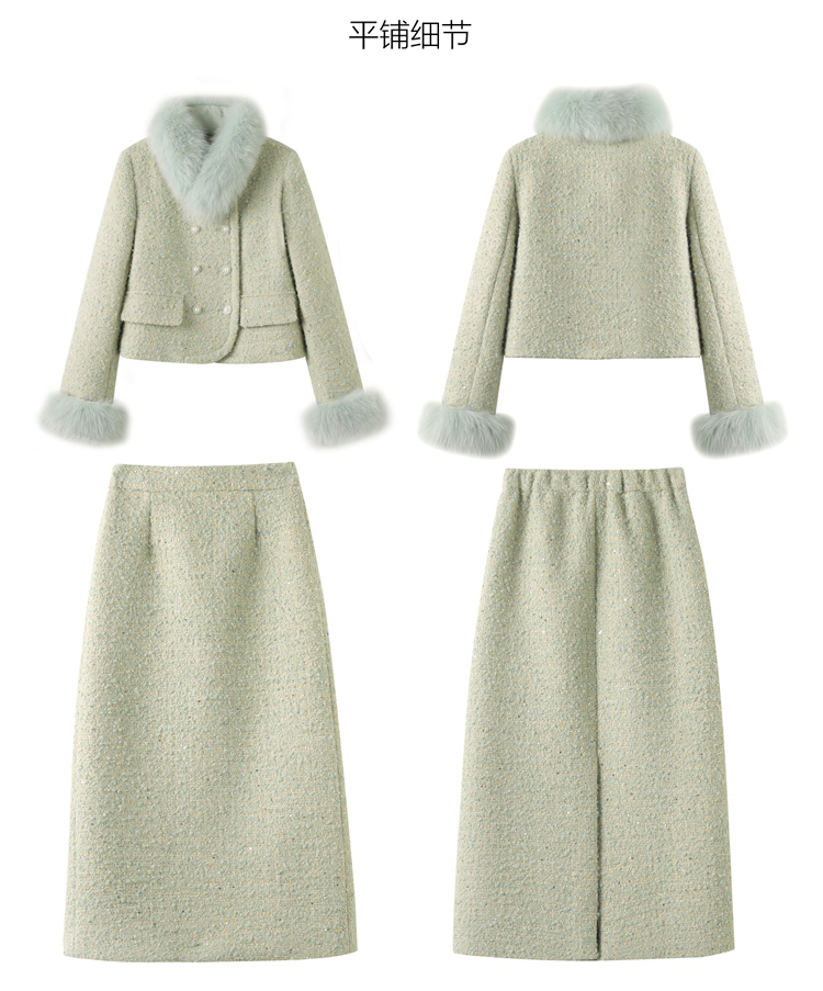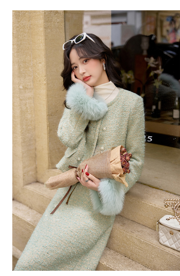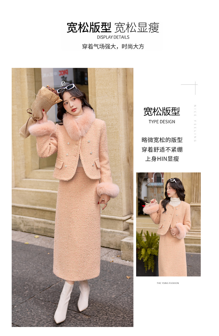 50%羊毛90%聚酯纤维狐狸毛,冬装长裙套装HR-YJLY86832
