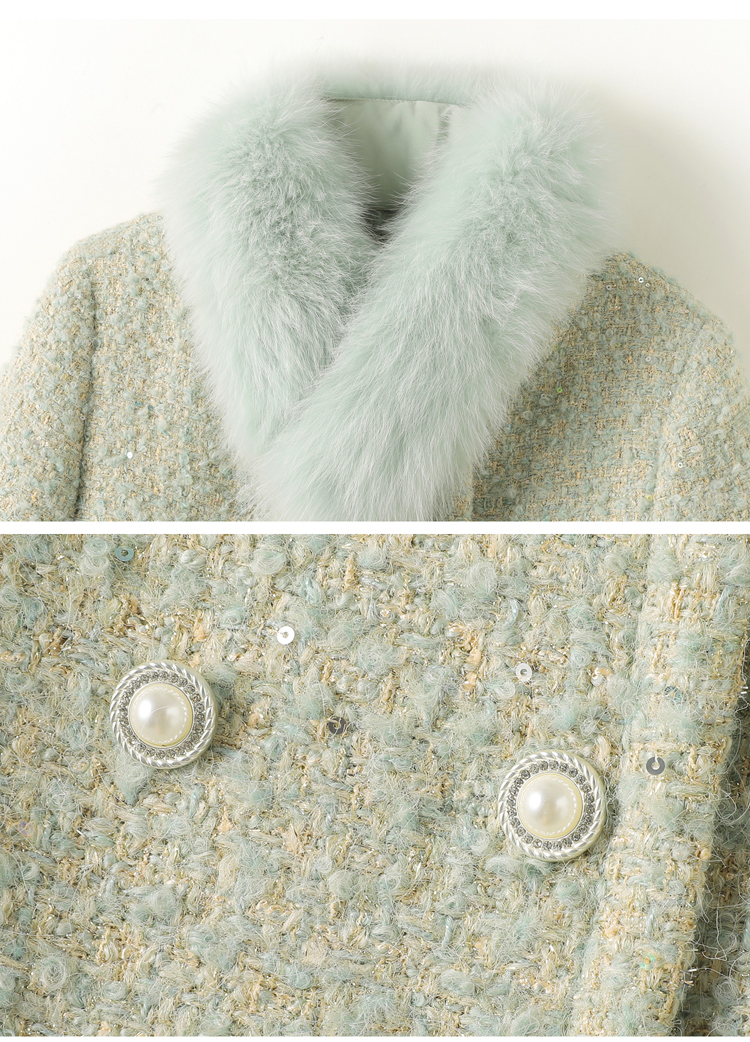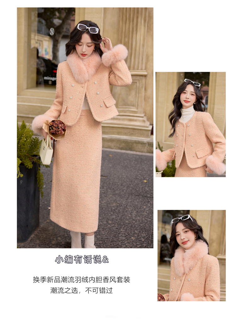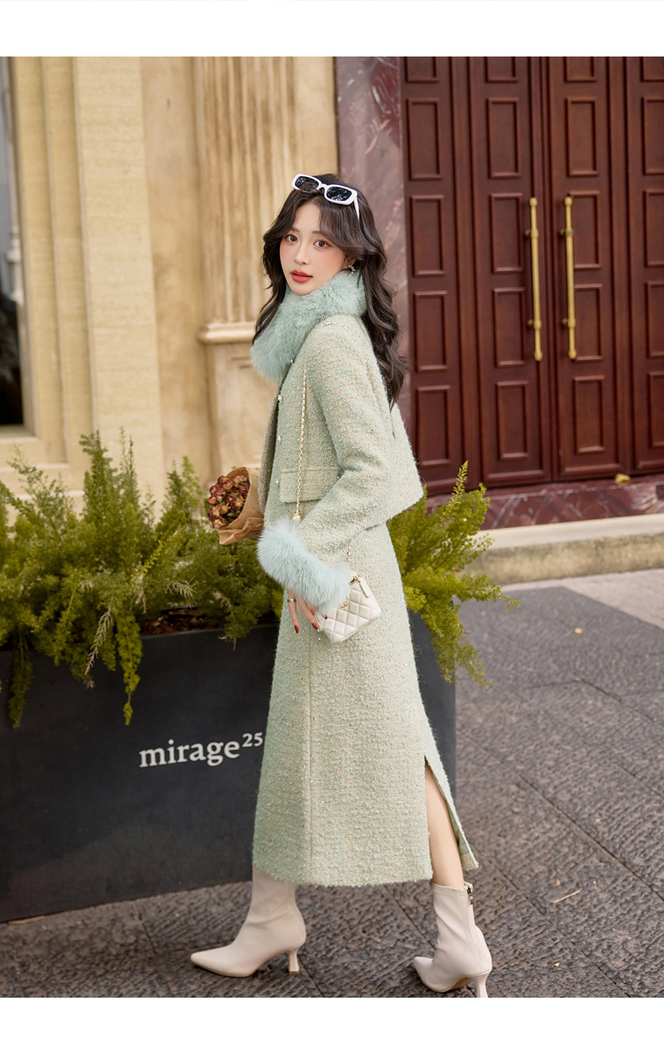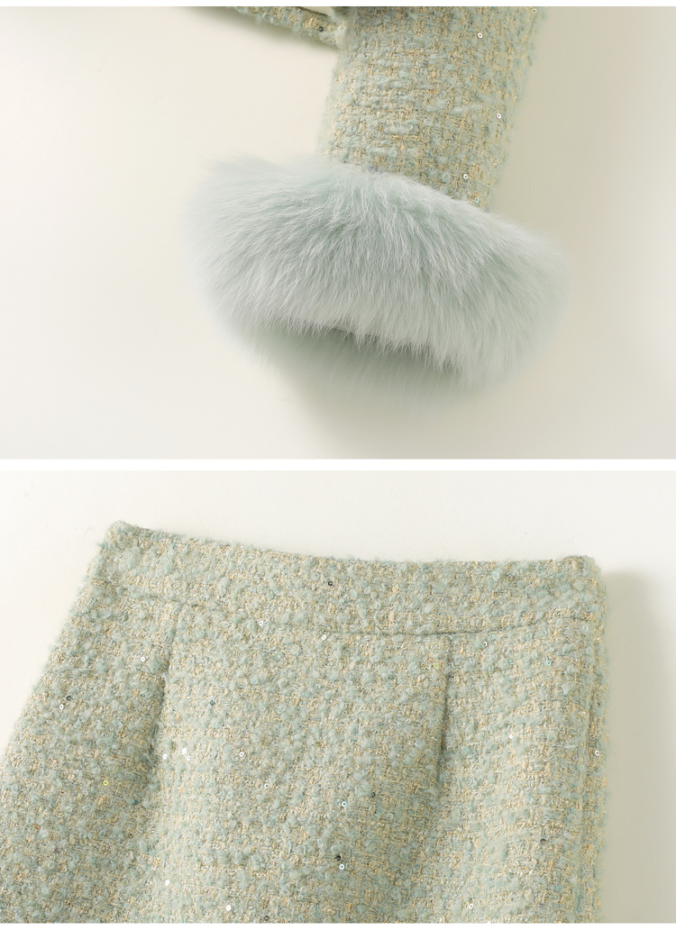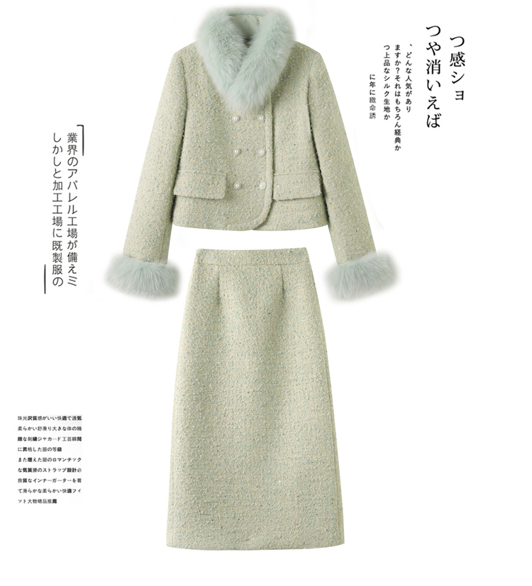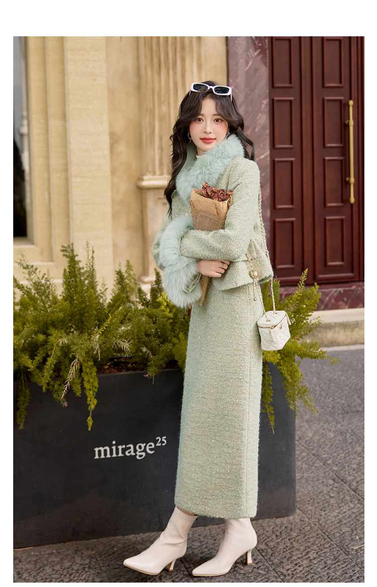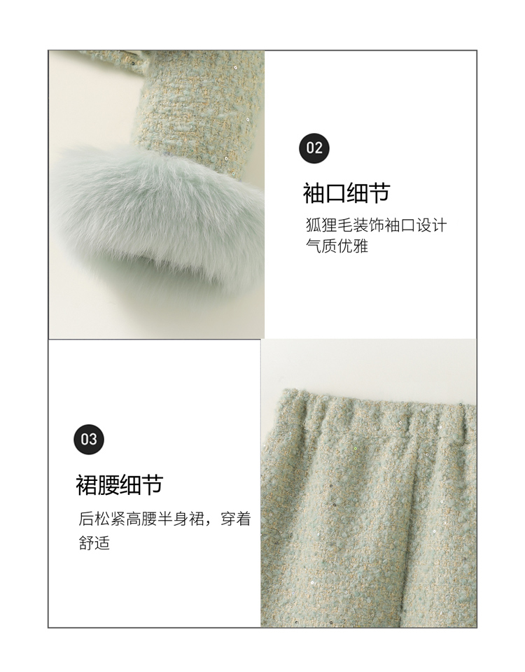 50%羊毛90%聚酯纤维狐狸毛,冬装长裙套装HR-YJLY86832