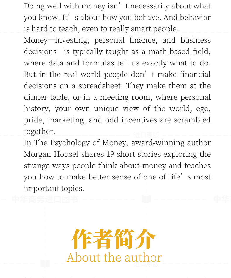 【中商原版】致富心态 关于财富 贪婪与幸福的20堂理财课 The Psychology of Money 英文原版 Morgan Housel
