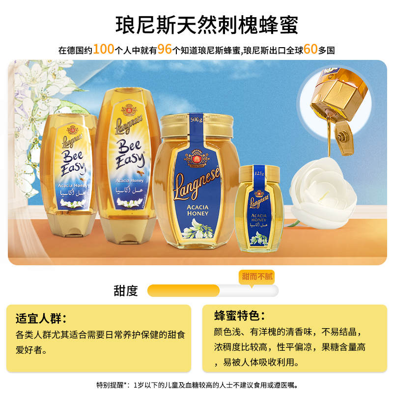 德国琅尼斯方便装刺槐蜂蜜500g/250g 入口温和绵柔便携汲取 031433/031432