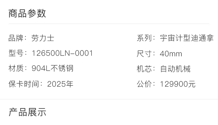 【预售】劳力士126500LN-0001 商品图1